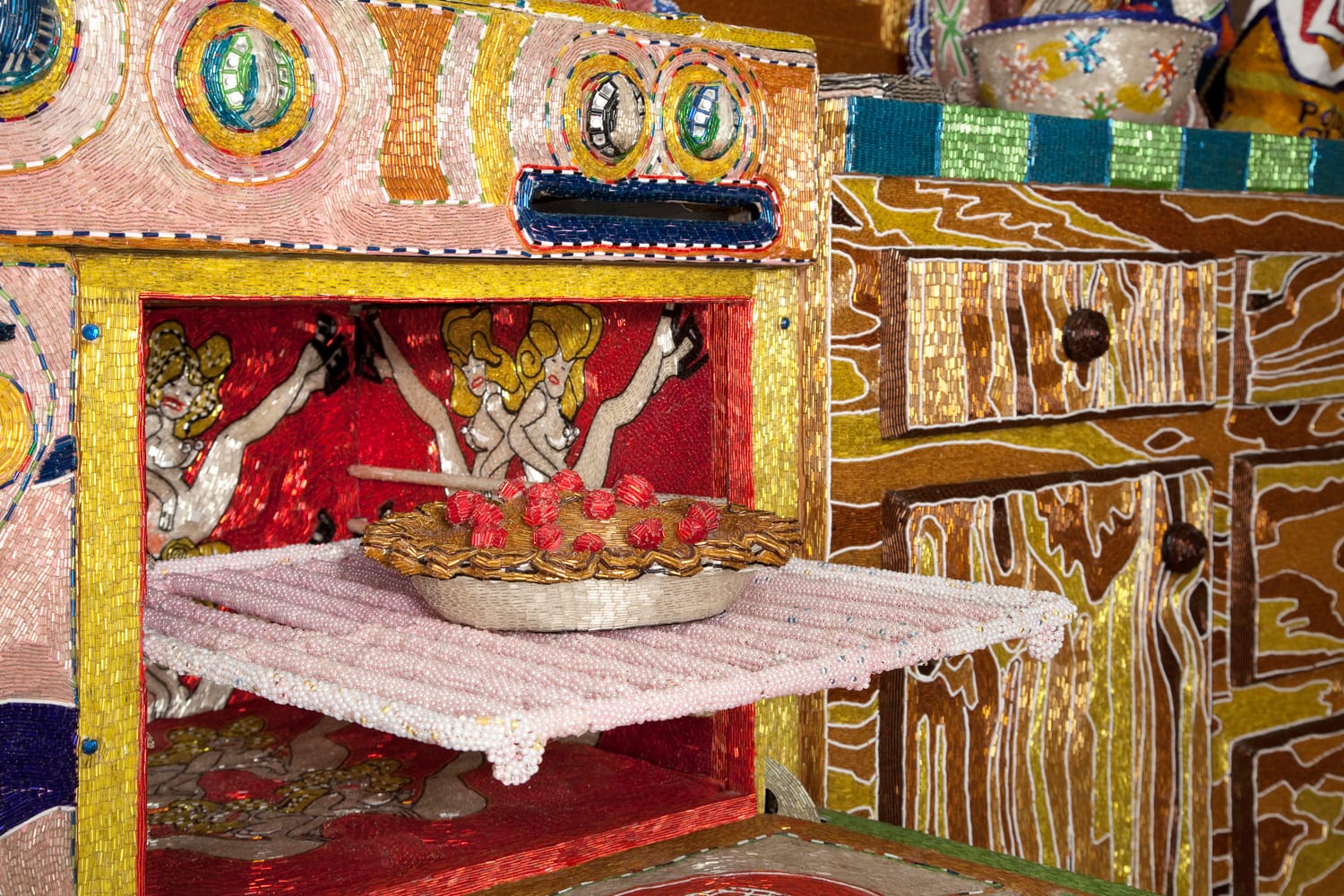 Liza Lou, "Kitchen" (1991-1996) (detail), glass beads, wood, wire, plaster, and artist's used appliances, 96 x 132 x 168 inches (collection of the Whitney Museum of American Art, New York, image courtesy the artist and Lehmann Maupin, New York, Hong Kong, Seoul, and London)