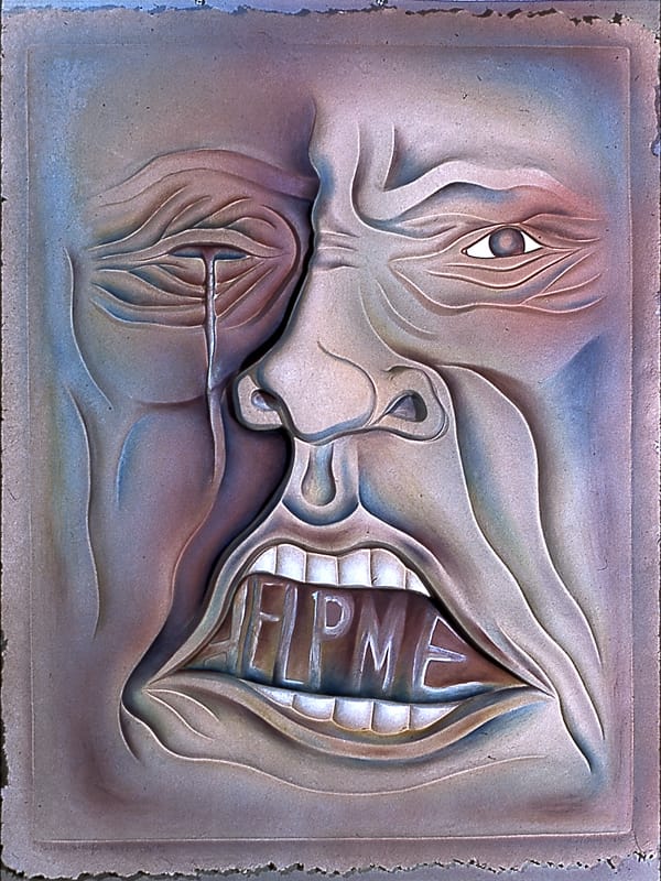 Judy Chicago "PowerPlay Series: Doublehead with Gold Tear/Help Me" (1986), edition six of 12 (collection Jordan Schnitzer Family Foundation, © Judy Chicago/Artists Rights Society (ARS), New York, photo © Donald Woodman/ARS, New York)