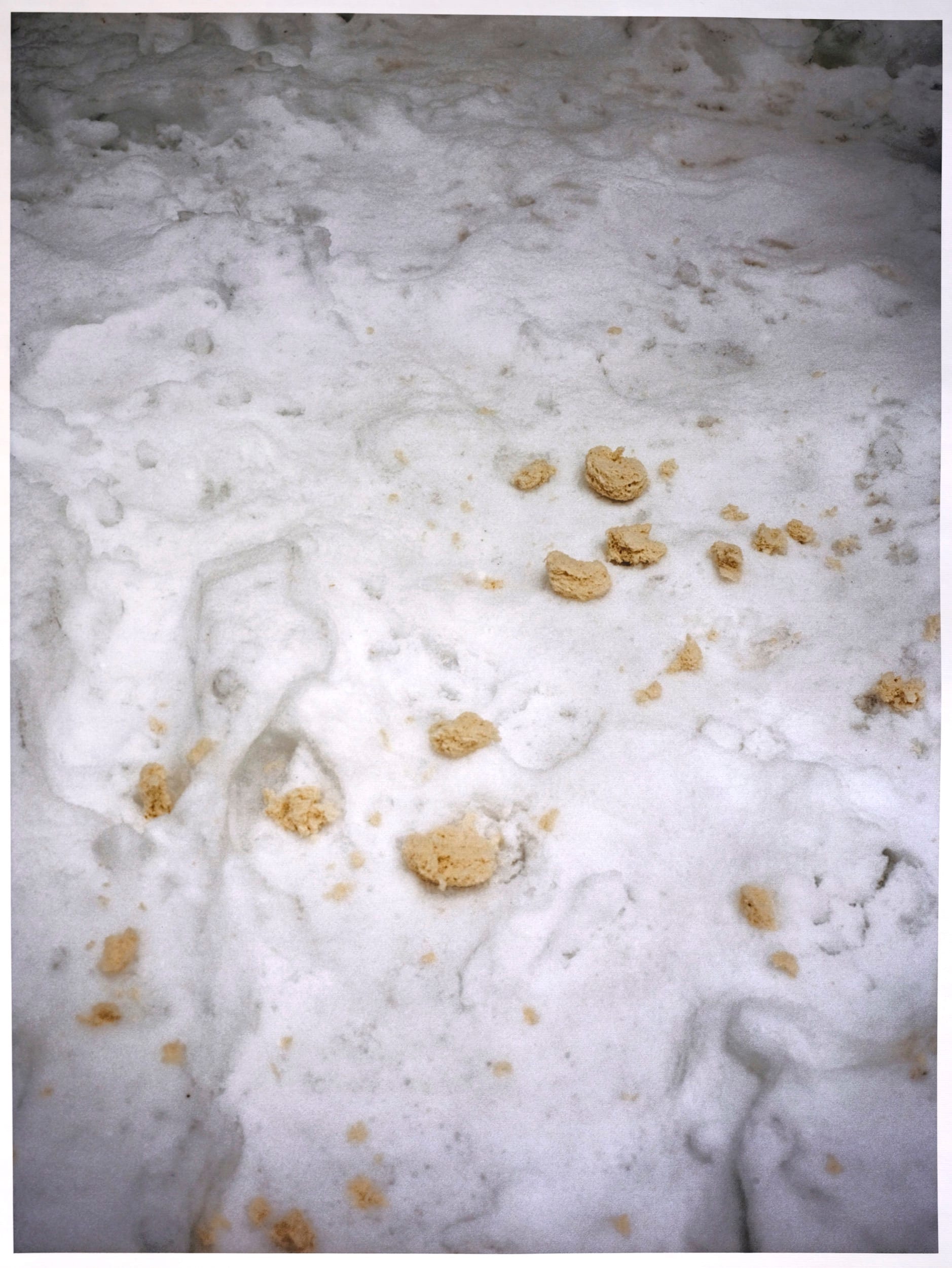 Linn’s camera doesn’t register her absence, as it did for Maier when she photographed her shadow on the back of a person standing some distance in front of her. Rather, it registers her solitariness from the world in which she is immersed. She seems to float, suspended, a bodiless eye. Linn’s “decisive moment” is the isolation of living invisibly in the world. Starting with “frozen piss,” this is what the photographs I've gravitated toward have in common: People are either absent or unseen, as in “happy car,” which Linn took while visiting Levitt, a longtime friend, in Roxbury, New York. In the black and white “slurpy” and the color photograph “foam on snow,” she records traces of humans and their wasteful existence, as if commenting on their own briefness.