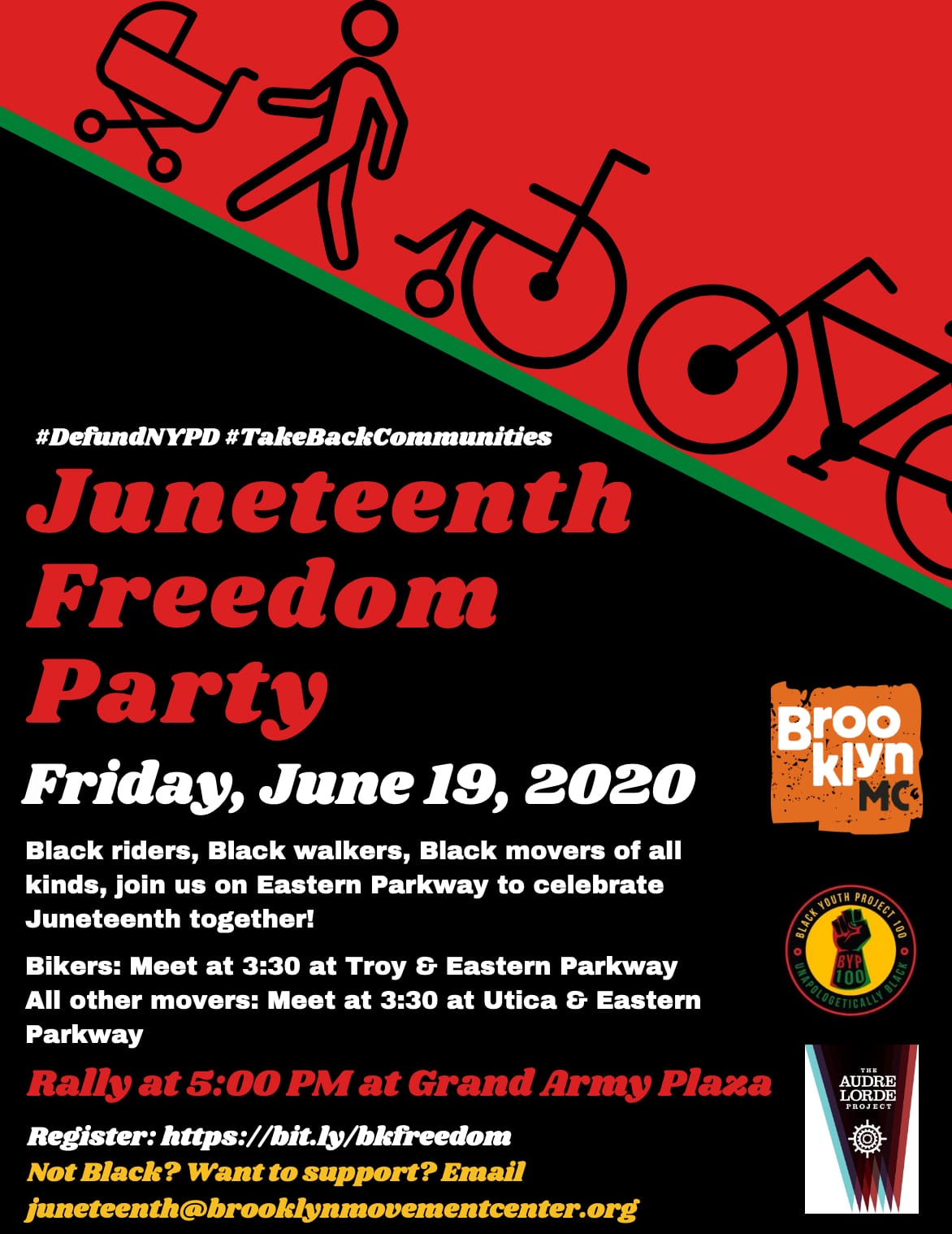 These three organizations, each of which have long been invested in the struggle for racial justice, have teamed up to invite Black riders, walkers, and “movers of all kinds” to join them for a celebration and rally along Brooklyn’s Eastern Parkway. (Please wear masks to curb community spread.)