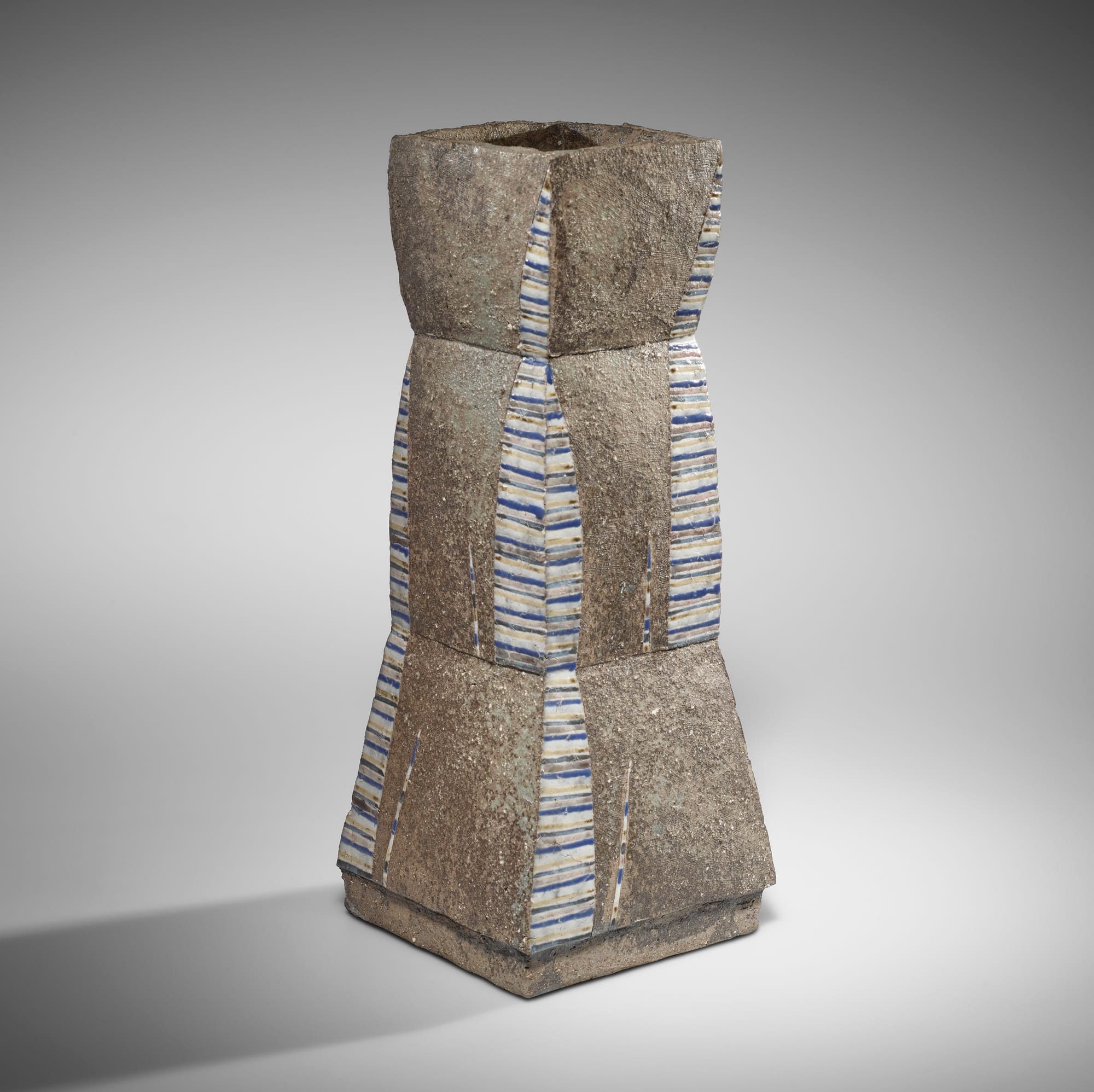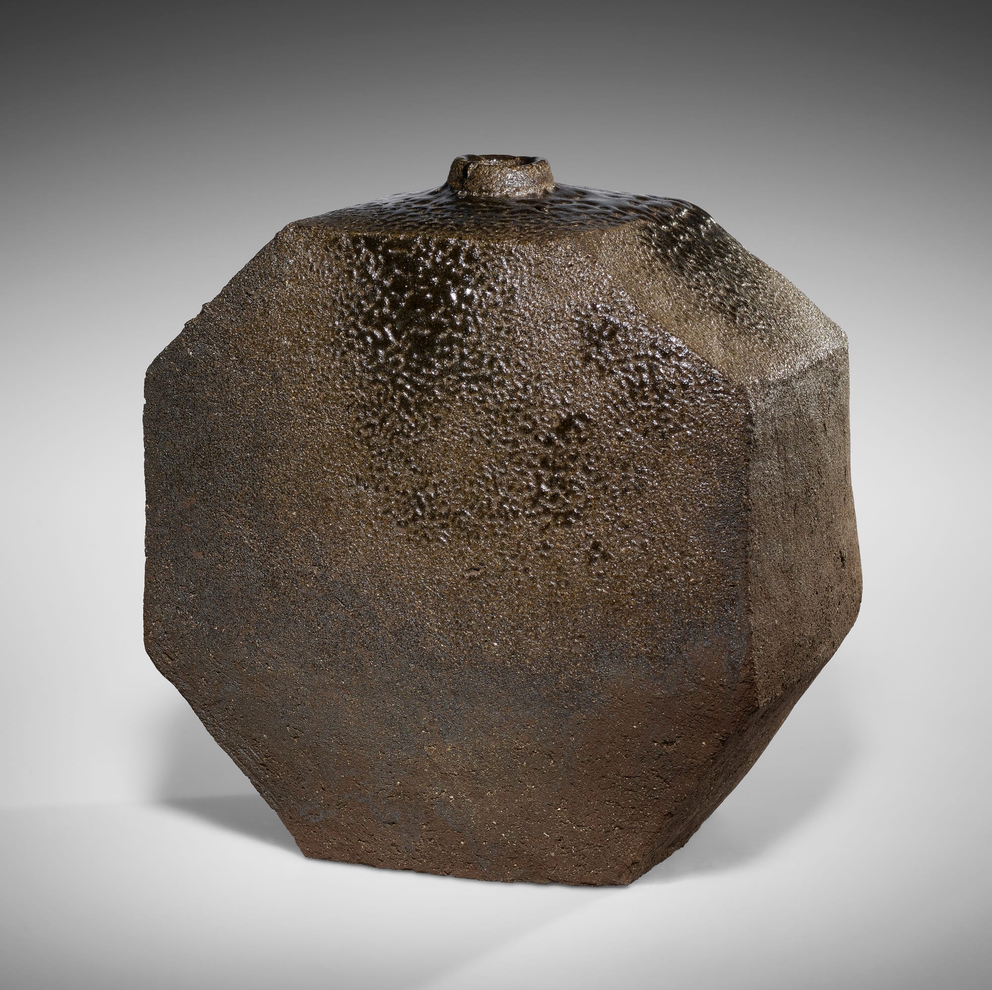 Kamoda Shōji, "Octagonal vessel" (1968), glazed stoneware, 10 x 9 1/2 x 6 3/4 inches (Carol and Jeffrey Horvitz Collection)