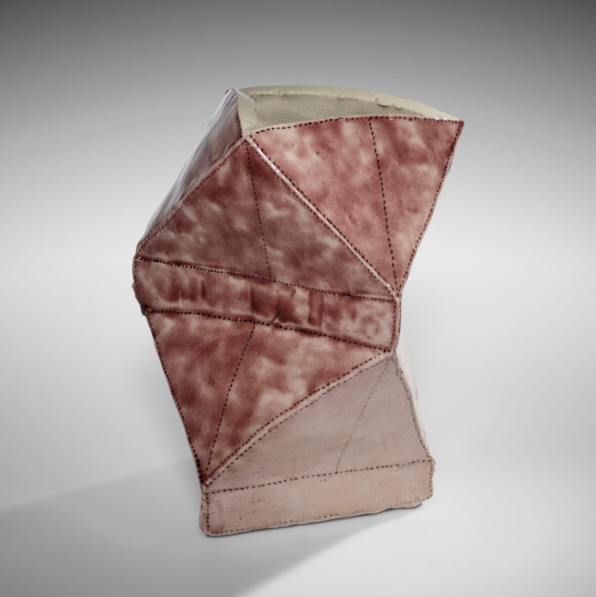 Kamoda Shōji, "Faceted vessel" (1968), glazed porcelain, 8 5/8 x 6 3/8 inches (collection of Joan B. Mirviss and Robert J. Levine)