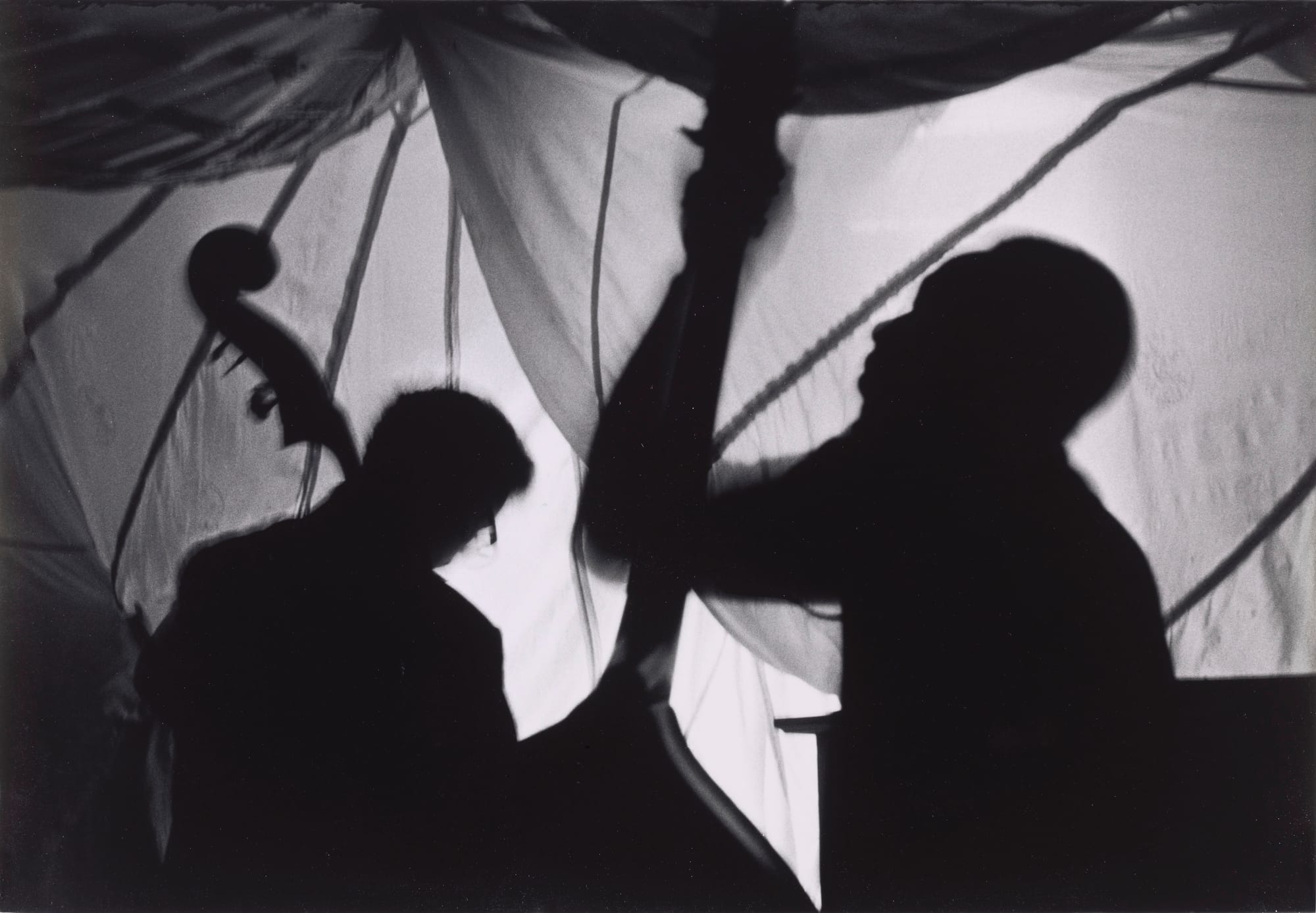 Among all of the photographs on view there is a shared language: rich, pronounced shadows inspired by Roy DeCarava, a pension for abstraction informed by the work of Harry Callahan and Robert Frank, a lyricism captured in motion blurs influenced by reading Langston Hughes and listening to Miles Davis. Unconventional portraits like Herb Robinson’s stirring image of Miles Davis and Ming Smith’s animated still of Sun Ra demonstrate a willingness to break with photographic convention and deemphasize clarity and stillness in favor of capturing the energy and spirit of a space or person.