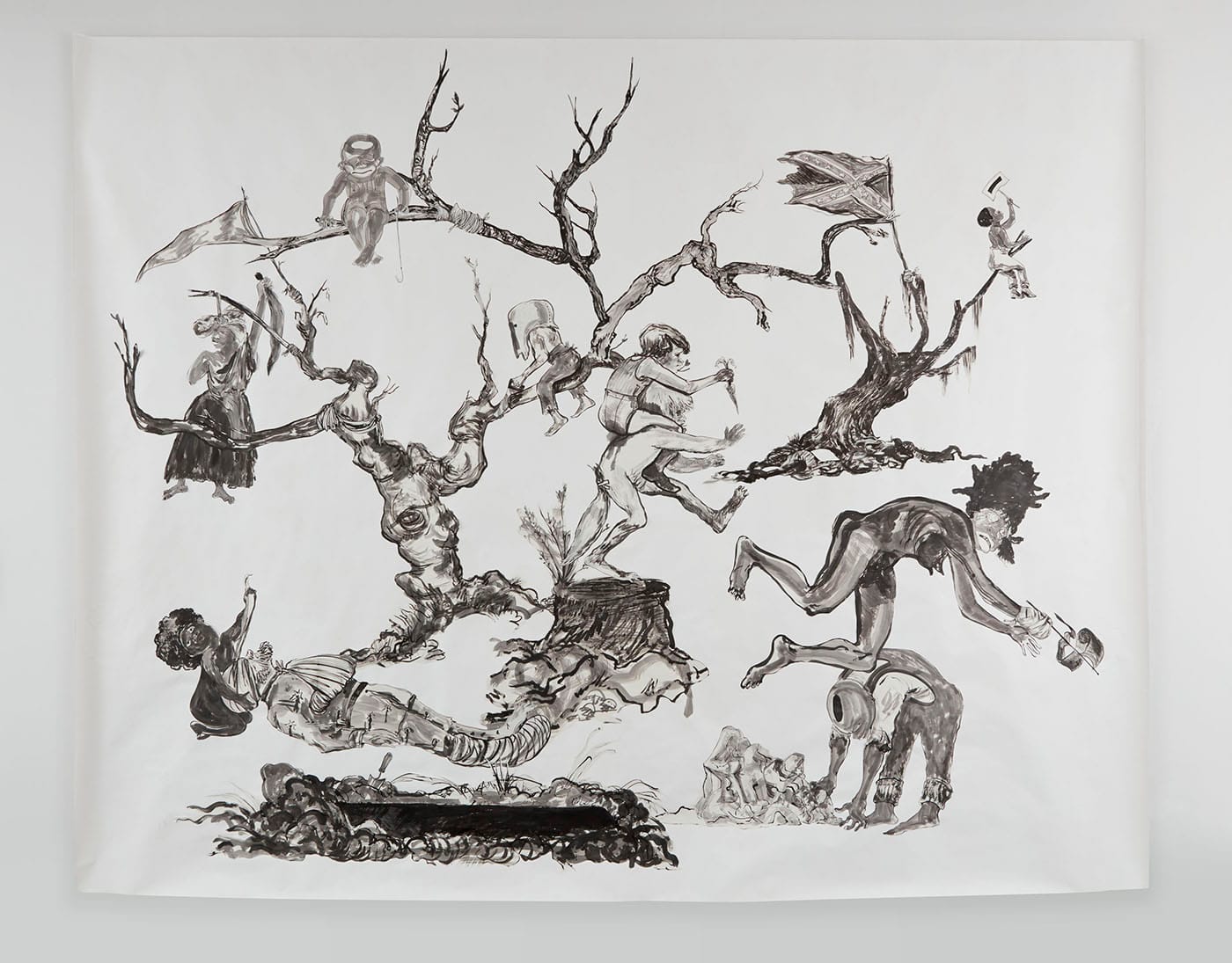 Walker's drawn and collaged images depicting haunting scenes of abuse and violence refuse to let us look away from America's bloody past and present.