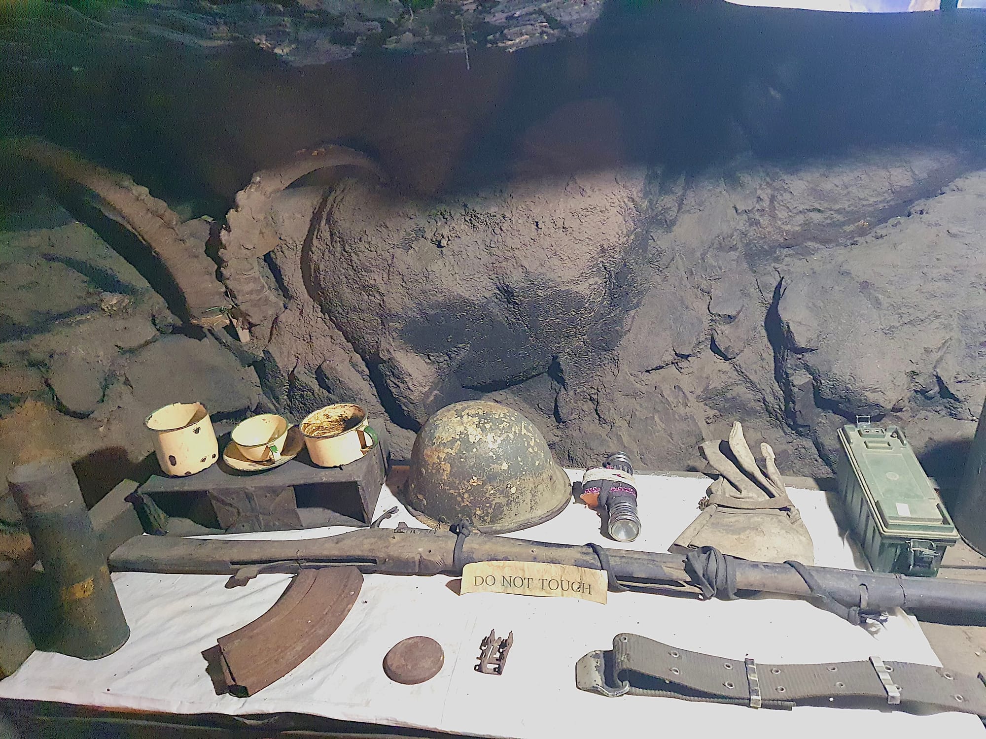 Inside the museum’s dim first room, the war’s shadow looms large. Jagged shrapnel fragments, a cracked helmet, and relics of the battle that scarred this mountainside are arranged on rough wooden shelves. In a corner, a mud-caked mine lies safely encased — a chilling find by Baqir’s elder brother, Ilyas Ali, in a nearby field.
