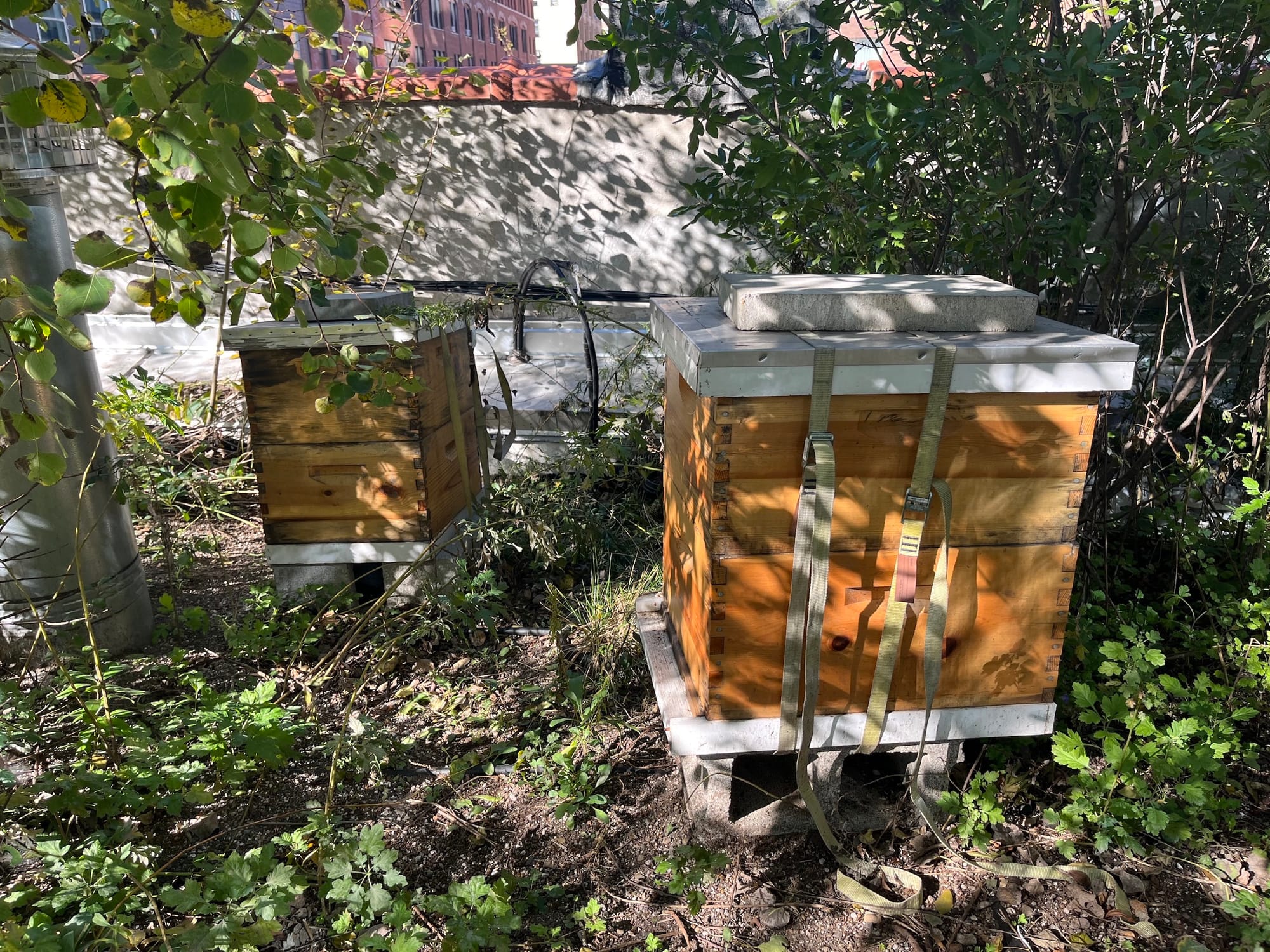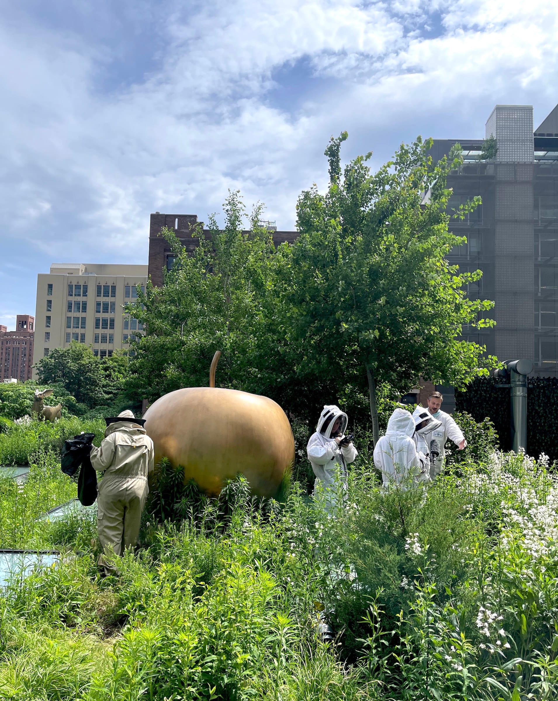 In the fall, the beekeepers prepare the hives for cold weather, checking on them sporadically throughout the winter to make sure they are surviving the cold. Corey Bernstein, a preparator at Kasmin Gallery who serves as its "bee liaison," said that according to a recent sample, the tiny creatures mostly forage from oak trees in the city. The project is in collaboration with beekeeping company Best Bees, which hosts lectures and honey tastings for the gallery staff in the summer. It's part of a larger initiative to turn the sculpture garden into a more welcoming space for birds and insects.