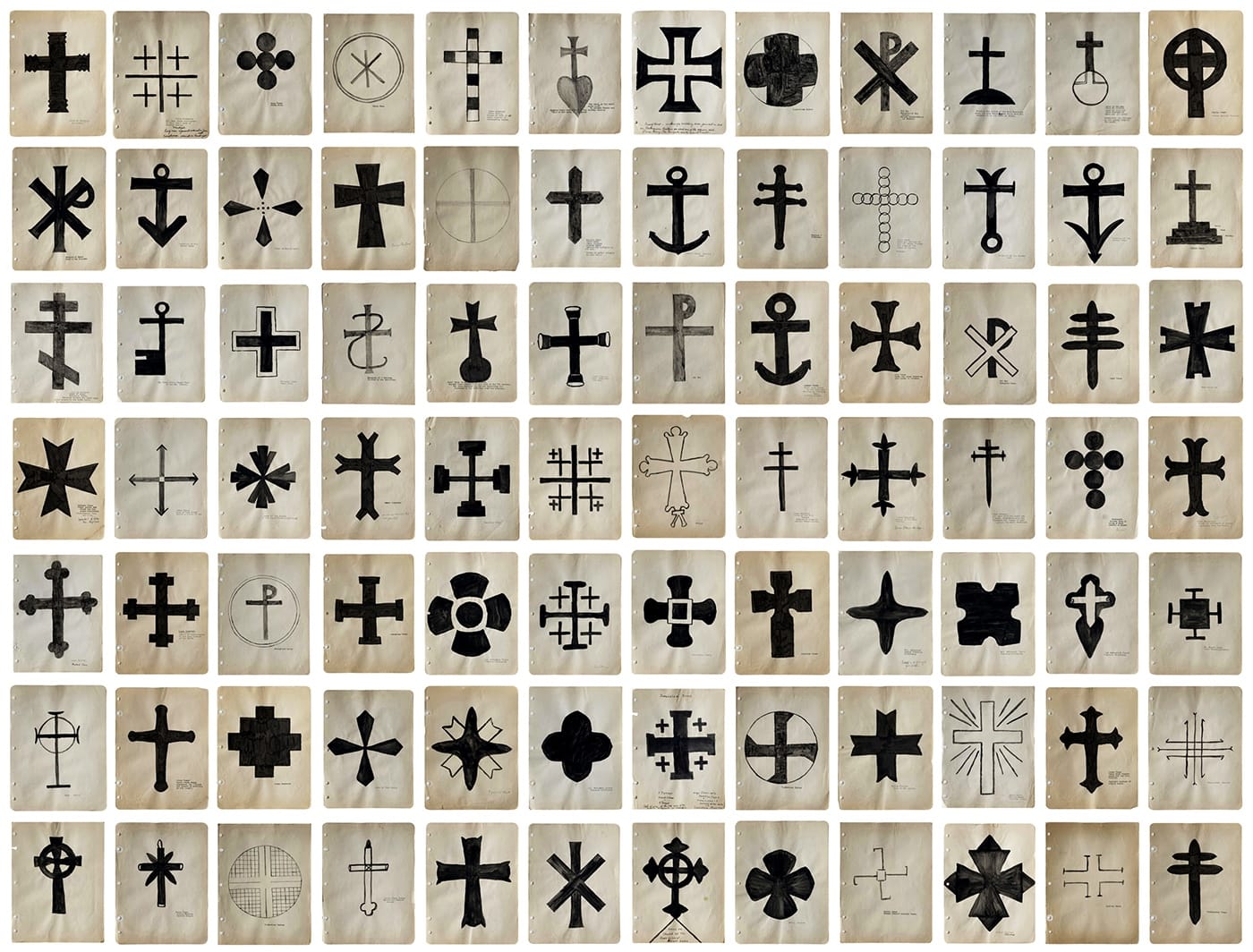 From Austria, Galerie Gugging will offer collages by Johannes Lechner (born 1964). Known as “Lejo,” he uses photos from old family albums as his raw material, cutting them up, combining them, and sometimes embellishing them with pencil-drawn designs. At his home in Vienna, he works with his blinds drawn, bright lights switched on, and jazz music blaring. Meanwhile, the outsider-art field might have a lot to learn if some revealing light could be shed on the biographical details of “Mrs. George Dunham,” a pastor’s wife who, presumably in the 1940s, created more than 100 black-ink-on-paper drawings whose images are all variations on the shape of the cross (Steven S. Powers). The air of classic modernism’s fascination with pure form wafts through this graphically potent series.