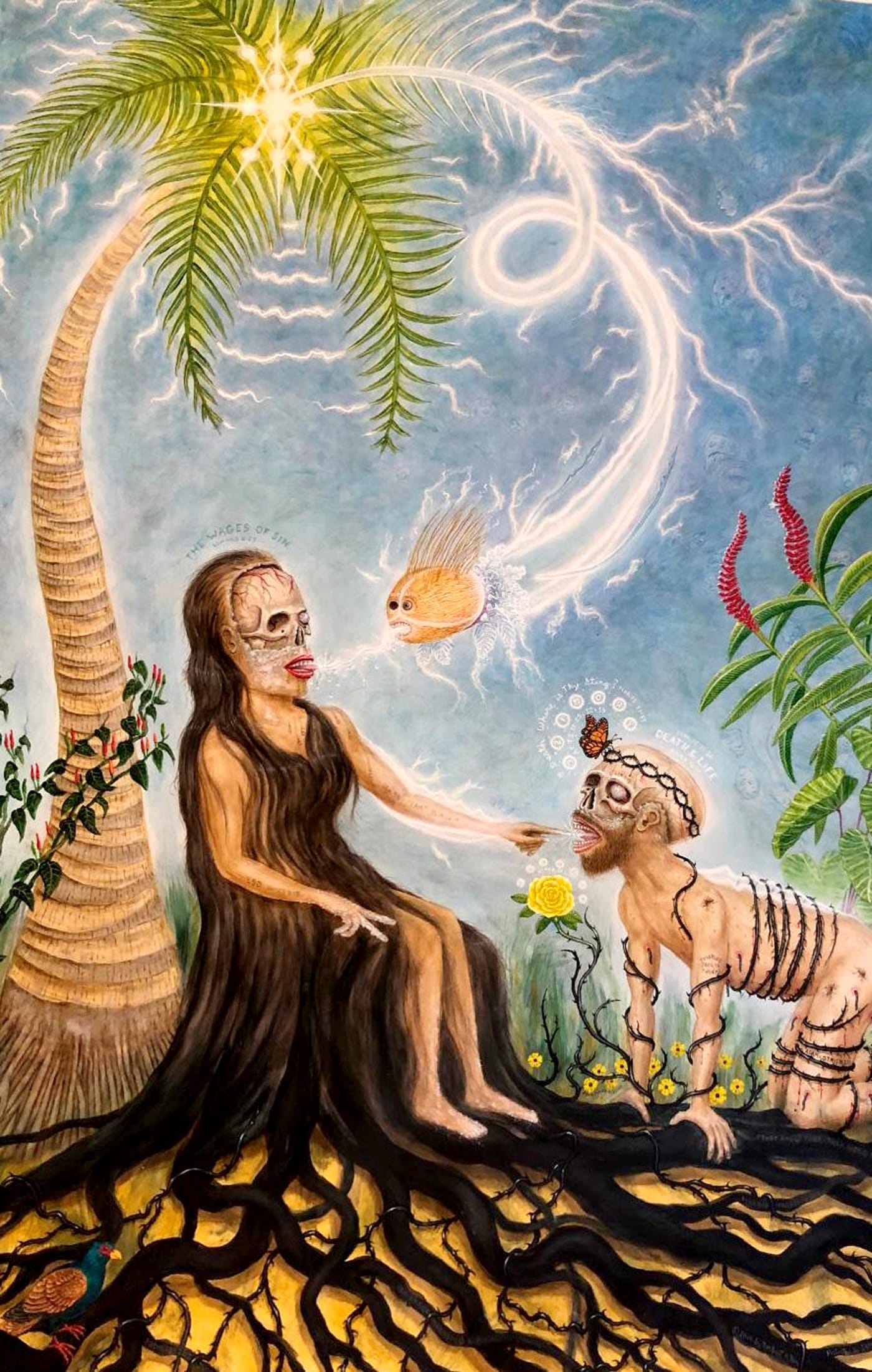 For sheer audacity and bizarreness, at least in comparison with the cliché-ridden religiosity that characterizes some other American outsiders’ Christian-themed imagery, the late Norbert Kox’s “Adam and Eve” (acrylic and oil on canvas), from Milwaukee’s Portrait Society Gallery, offers a shot of otherworldly-psychological intensity of its own. This is one deliciously strange tableau that some museum should immediately scoop up and hang next to its Leonora Carrington and Remedios Varo paintings. ¡Adelante!