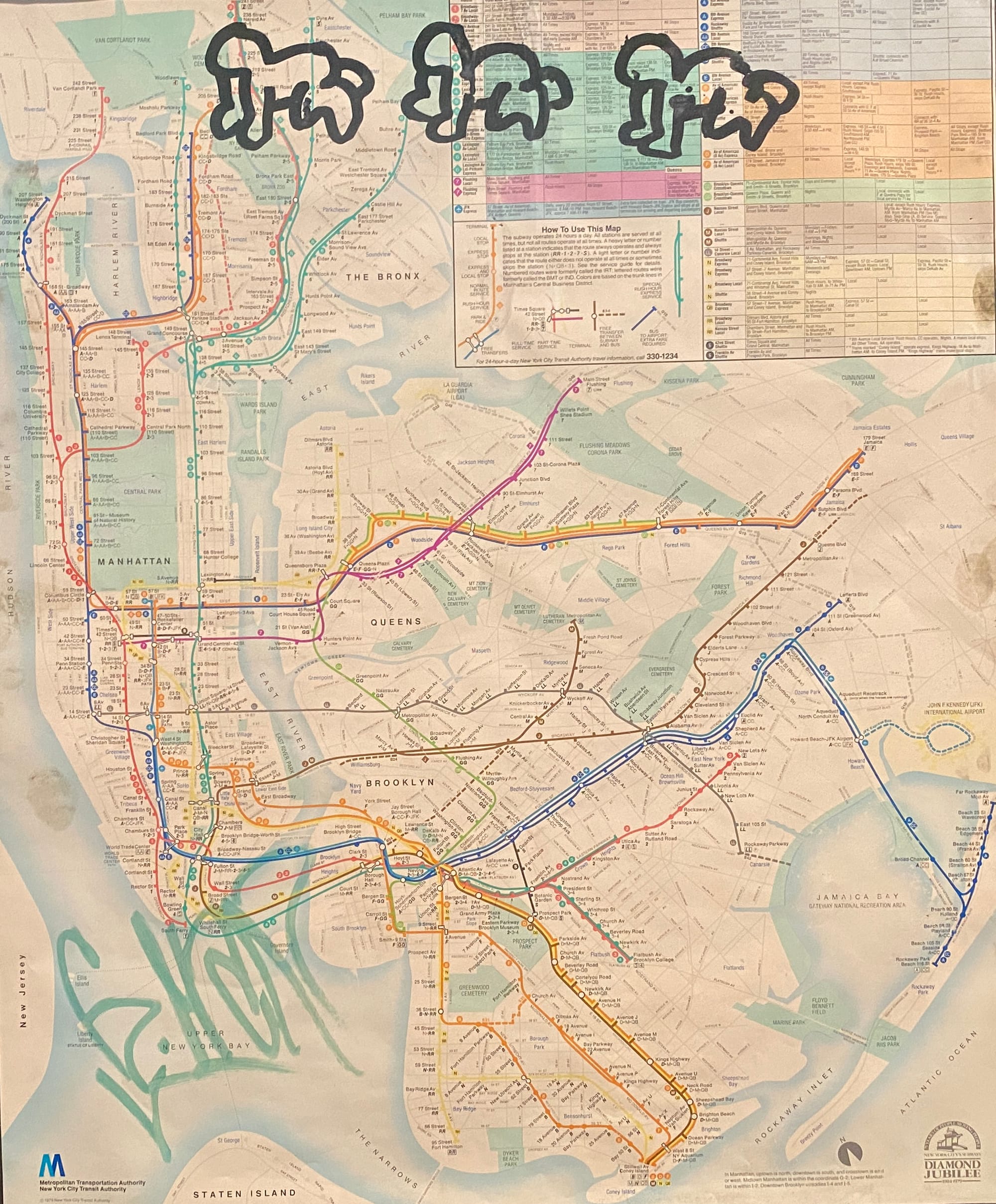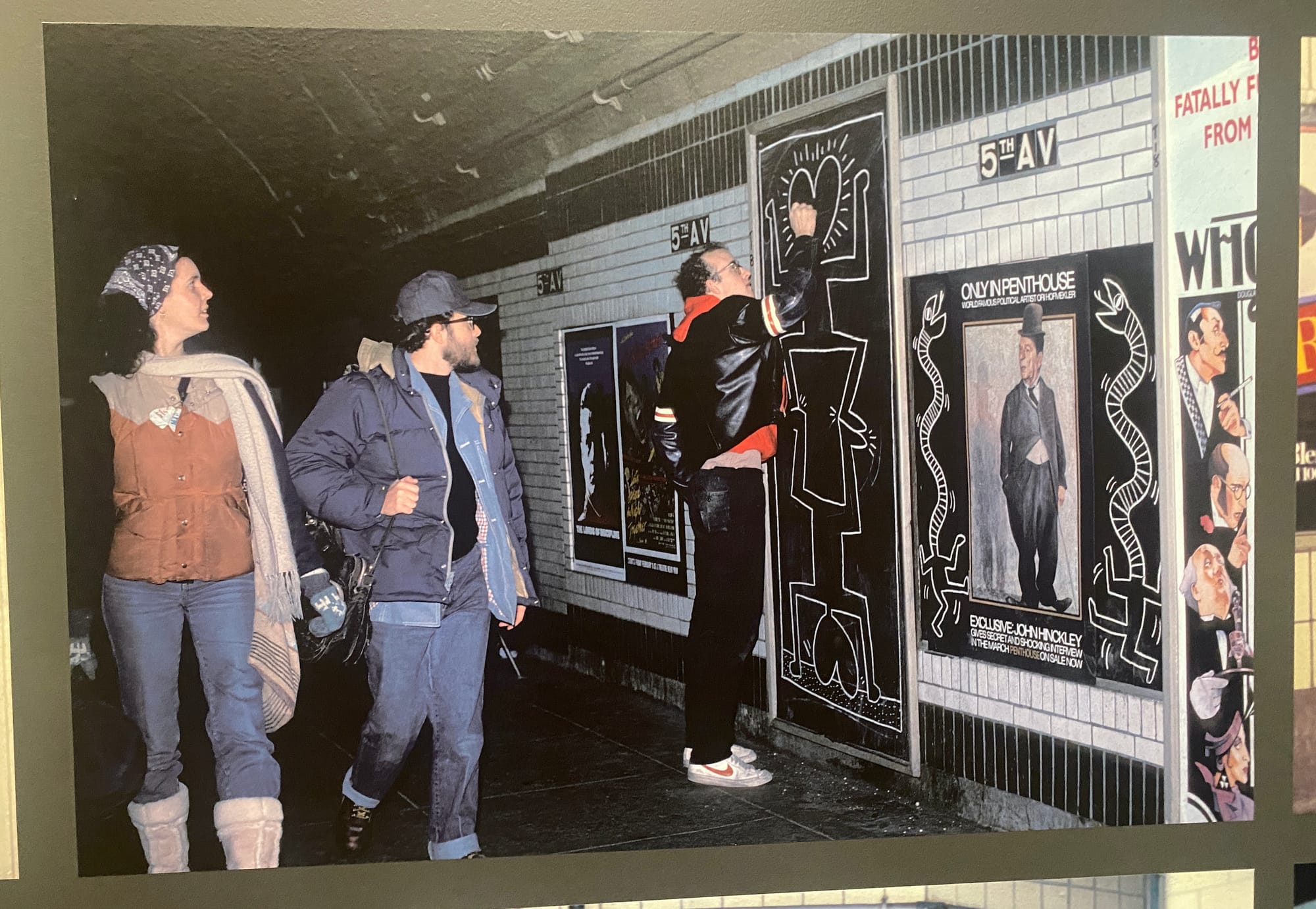 Forty years ago, Haring drew three crawling babies on a New York subway map, one of his signature motifs that would become a defining visual associated with him. This subway map appears at the gallery entrance alongside an array of photos by friend Tseng Kwong Chi showing the artist at work throughout New York.