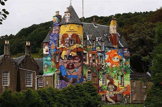 The way Kelburn Castle describes it on their site makes it sound simple and even sexy, back in 2007 they decided to take the “vibrant and often transient art form of Brazilian graffiti, out of its predominantly urban context and apply it to the ancient and permanent walls of an historic rural castle in Scotland.”