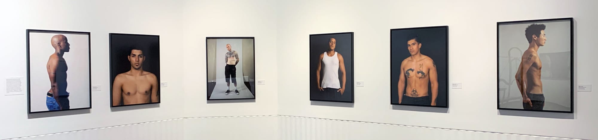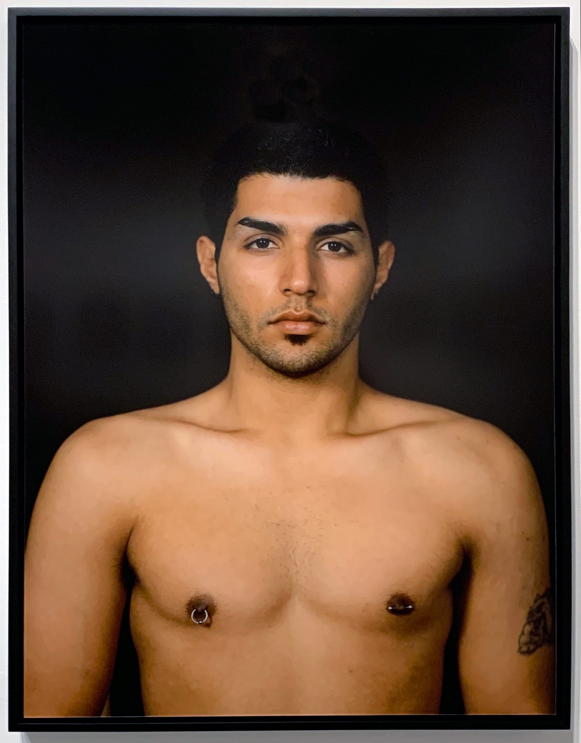 A similar empathy is evident in Gonzales-Day’s photos of Latinx men, taken after the artist told them about his lynching research, and of mostly queer friends and colleagues, shot with great care during the COVID-19 pandemic. The artist’s goal is to capture moments of comfort and trust between him and his subjects, which is apparent in works such as “Aaron” (2006), in which a bare-chested tattooed man with pierced nipples appears both vulnerable and saintly. Indeed, in a moment when the term “woke” is wielded either ironically or pejoratively, Gonzales-Day’s art reminds us that caring about those who are different from us is really a thing of beauty.
