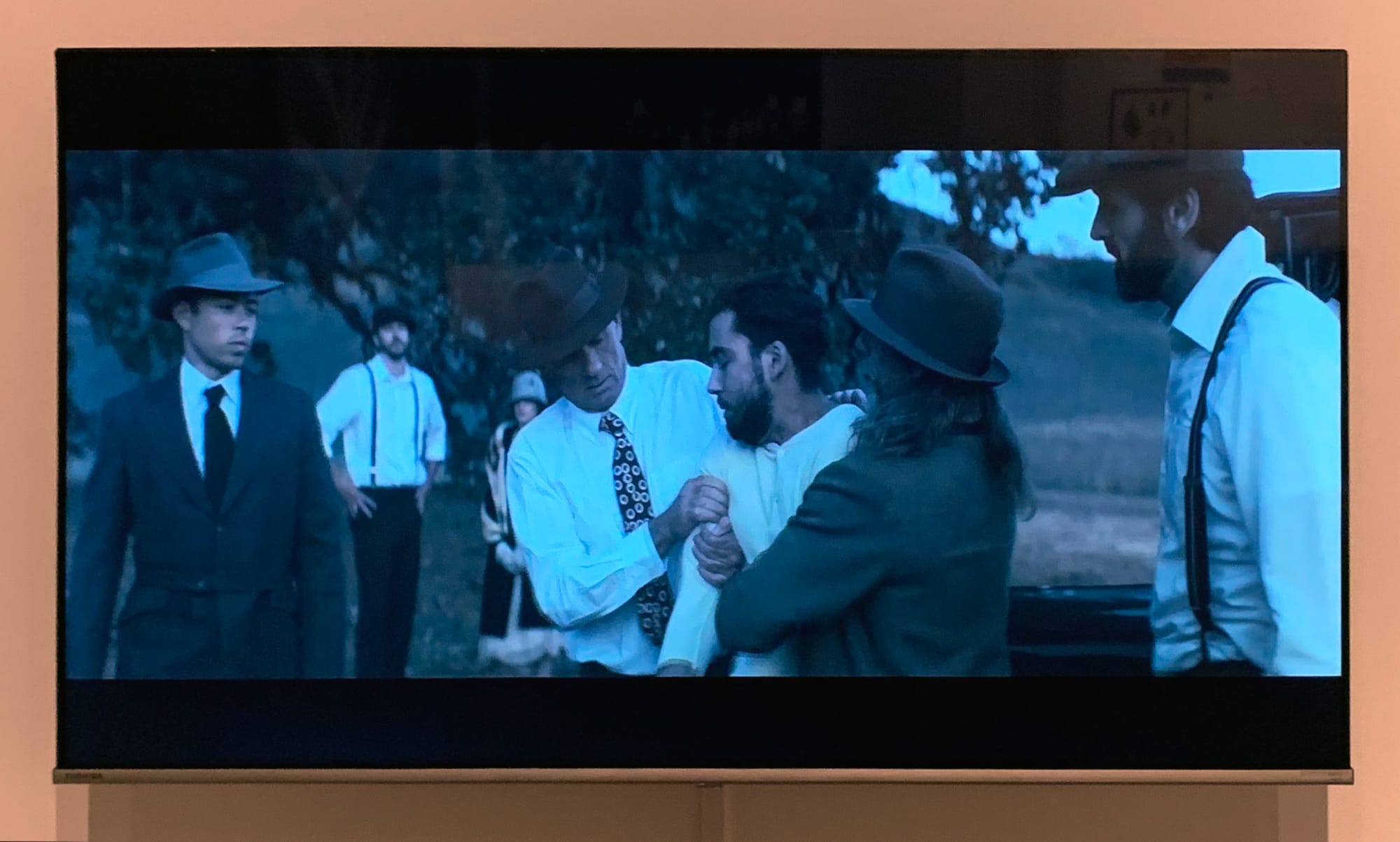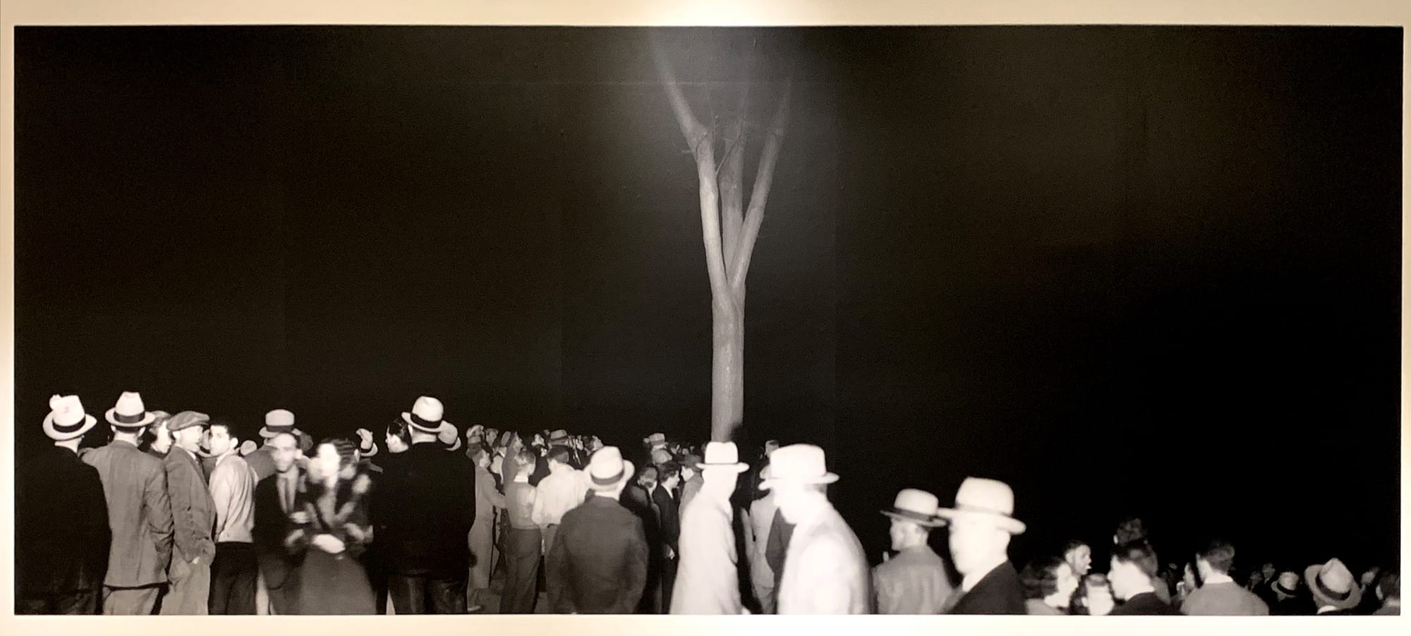 For “Searching for California Hang Trees” (2002–14), he memorialized the trees at probable lynching sites in haunting photographs. In the ongoing Erased Lynching series (begun 2002), he digitally removed the victims from historical photos, as in his reworking of a panoramic image of a crowd witnessing a 1933 lynching, and in several facsimiles of 19th-century postcards depicting the horrific events. In these works, the removal of victims suggests multiple metaphors: their deaths, their erasure from history, or the fact that their lives were considered valueless in that time and place. The riveting staged lynching reenactment video “Run Up” (2015) seems to counter that emptiness with presence, lingering on the troubled facial expressions of spectators, including victims’ family members and friends.