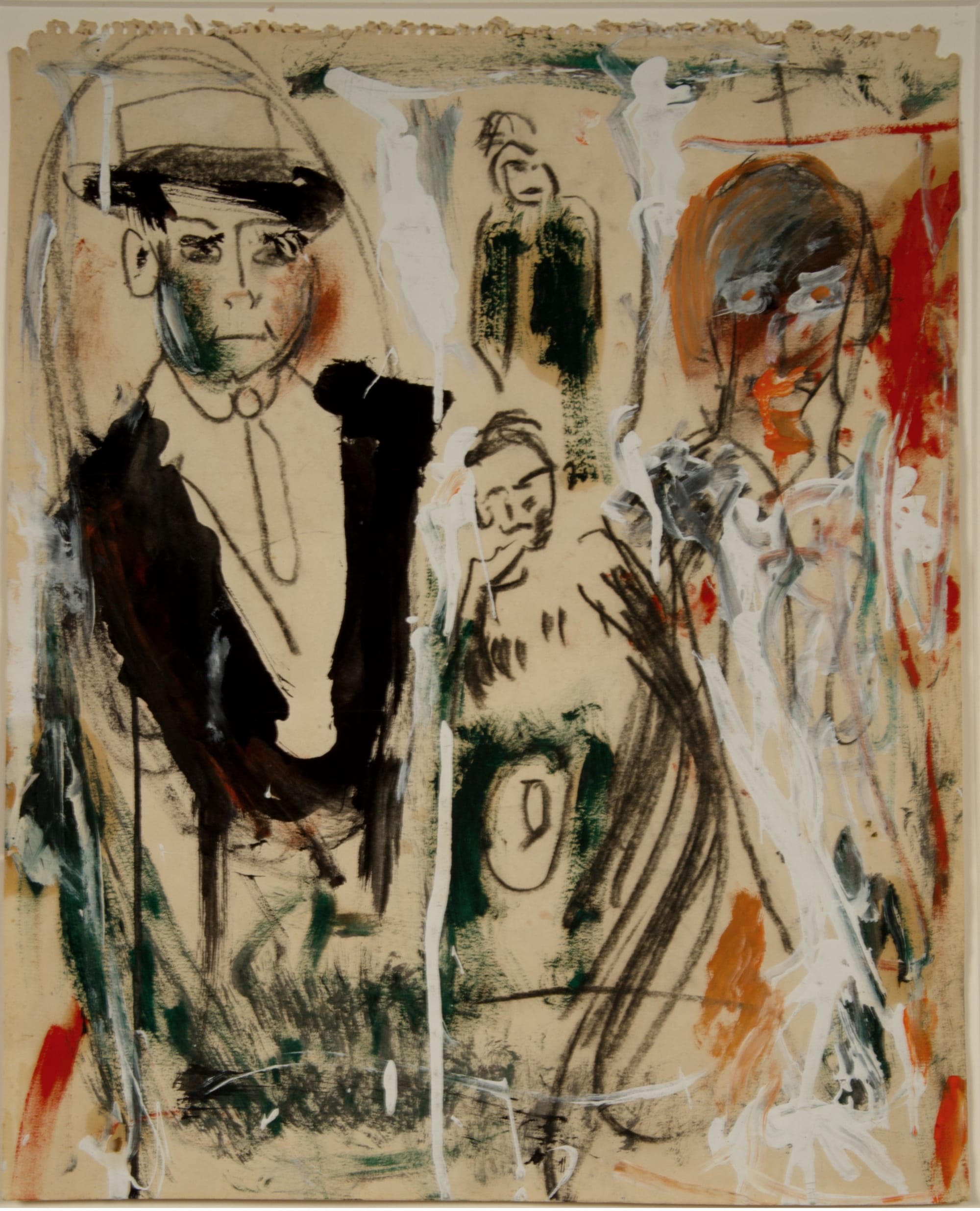 At first glance, the paintings look like yet another example of Jackson Pollock-esque Expressionism. (Pollock and Kerouac were contemporaries.) But, the more you look at the paintings, the more you study their poiesis, their emphasis on abstraction as a means of representing an emotion or a feeling, the more you’ll notice how unique they are — the more you’ll see how their themes intersect with those in his writings. Museum Director Sandrina Bandera writes in the catalogue that the paintings “reconstruct a narrative in which the written works and the forays into figurative art would perfectly coincide: different aspects of the same poetic journey.”