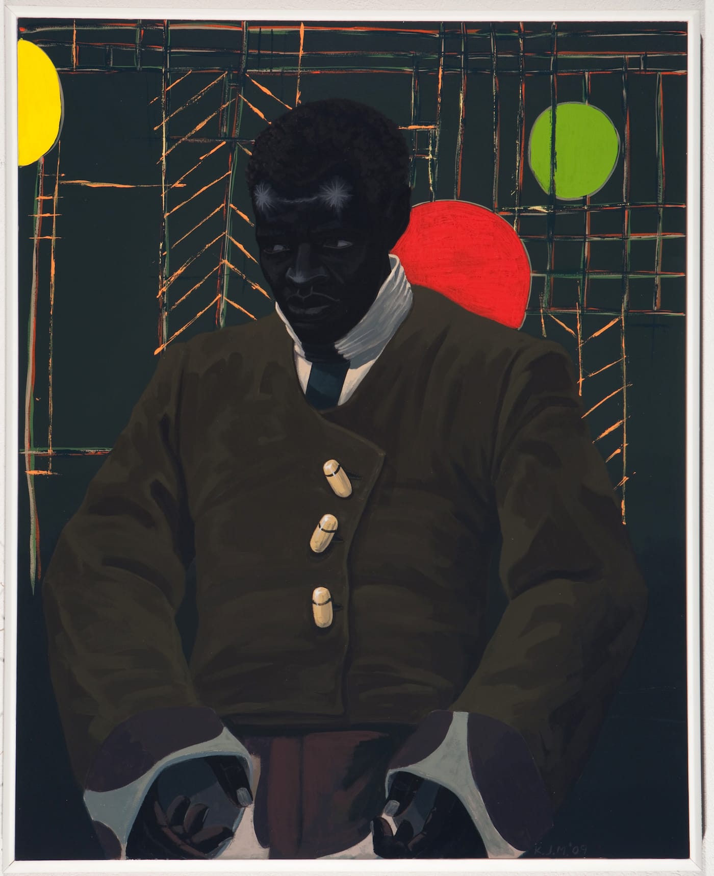 This is why Marshall’s achievement is nothing short of miraculous. Amidst all the pronouncements of the death of painting, and the celebration of the latest accommodation to the narrative of painting’s death, Marshall has refused to eat from the hand he has been offered. He has tackled social history, portraits, and history painting, and has concocted figures from his imagination. He doesn’t sugarcoat history either. In the painting “The Actor Hezekiah Washington as Julian Carlton, Taliesin Murderer of Frank Lloyd Wright Family” (2009), Marshal depicts an imaginary actor as Carlton, who murdered seven people with a hatchet and gasoline. In this day and age, Carlton, who died of starvation while in jail awaiting trial, would be classified as a mass murderer. He never revealed why he committed the murders, and all sorts of theories have been advanced. By portraying an imaginary actor in the role of Carlton, Marshall returns to the theme of invisibility from another perspective. Can we ever know what motivated him to do this deed? And yet, Marshall affords Carlton a certain dignity and mystery: we cannot see into his angry soul.