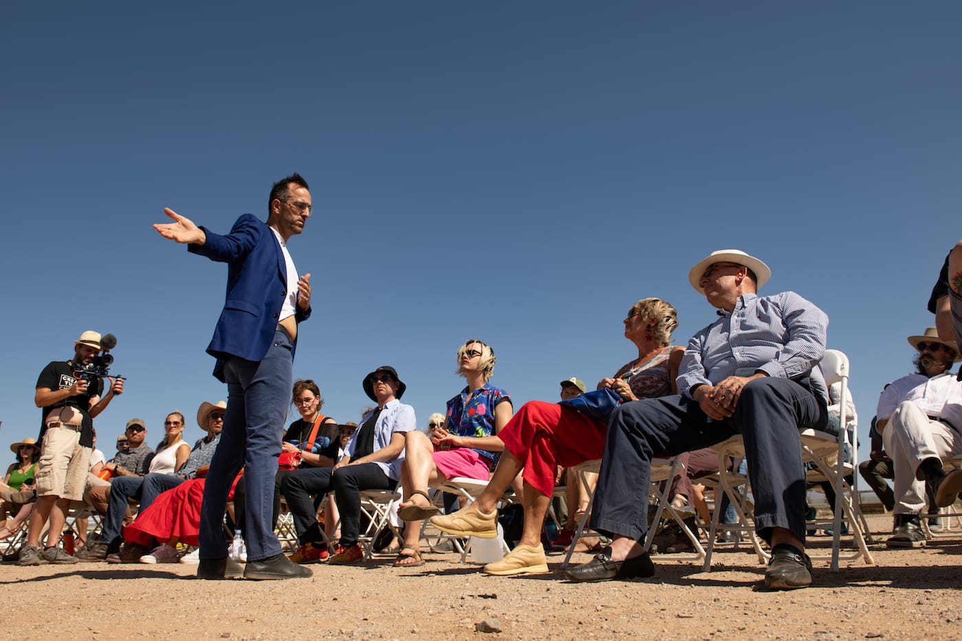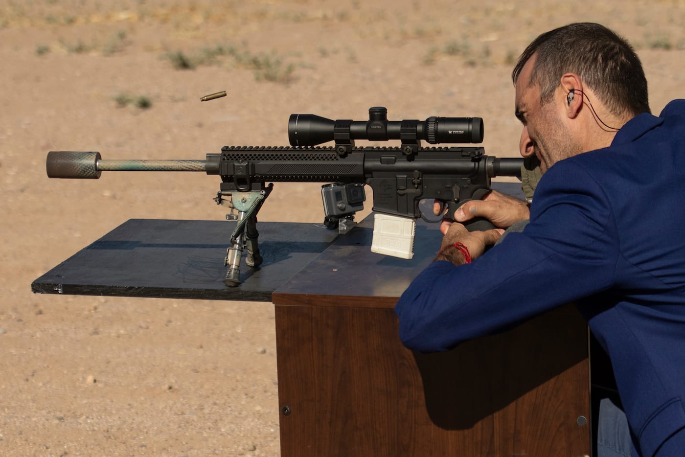 Khaled Jarrar’s performance “I am Good at Shooting, Bad at Painting” with the Museum of Contemporary Art Tucson took place near Tucson, Arizona on May 12.