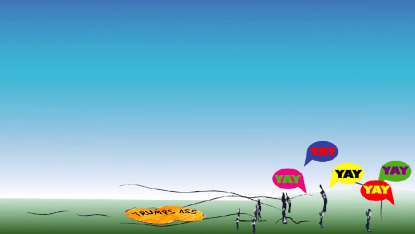 It is a proud time in America, when the dignity of our highest office can be adequately expressed by a giant floating ass in the sky. All things considered, I’d rather look at that then his bloviating face-hole, so let’s all get together this Giving Tuesday, and make “Kick Him Out” a reality!
