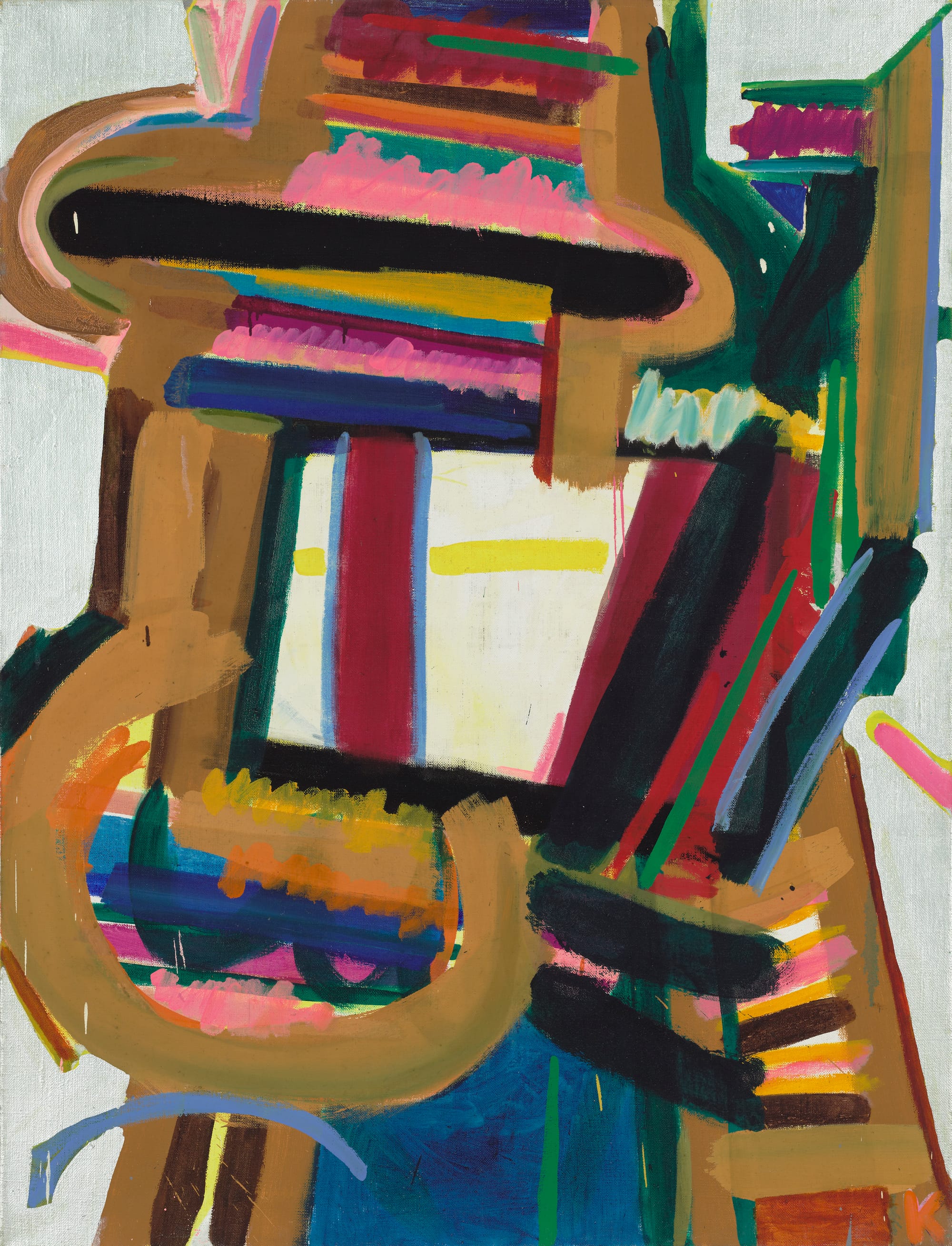 Born in 1935, Kogelnik was raised in the postwar ruins of Austria. After studying at the Academy of Fine Art in Vienna with a predominately male group of abstract artists, she traveled around Europe. In 1960, at the Venice Biennale, she fell into a tumultuous love affair with the American painter Sam Francis. He was 12 years older, and during the first year they were involved, recovering from tuberculosis. But he encouraged Kogelnik to use his studio in New York. It was 1961, when the height of the Cold War coincided with the cacophonous birth of Pop culture.