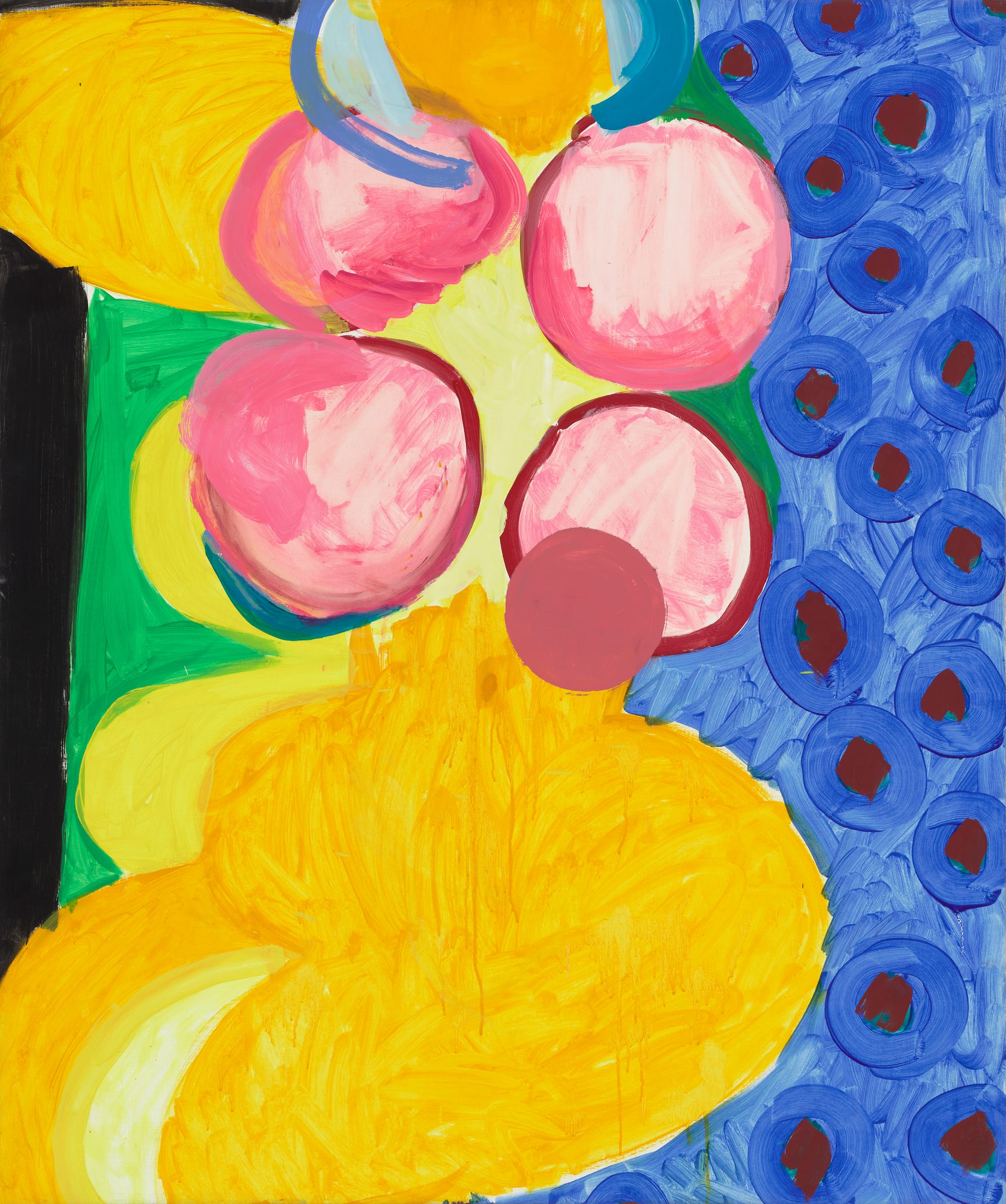 By the summer of 1961, when she painted “Marilyn,” a voluptuous lemony tribute to the screen goddess, Kogelnik had replaced the central phallic image with one that connotes an intensely luscious female sexuality.