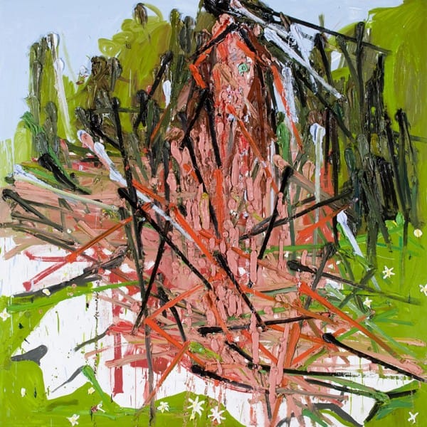 Kim Dorland’s paintings do not shy away from the brutality of love. Seizing on all of love’s untamed wildness, Dorland’s portraits of his wife are destructively passionate. Globs of oil paint are heavily dragged and slashed into works that seem made on pure impulse.