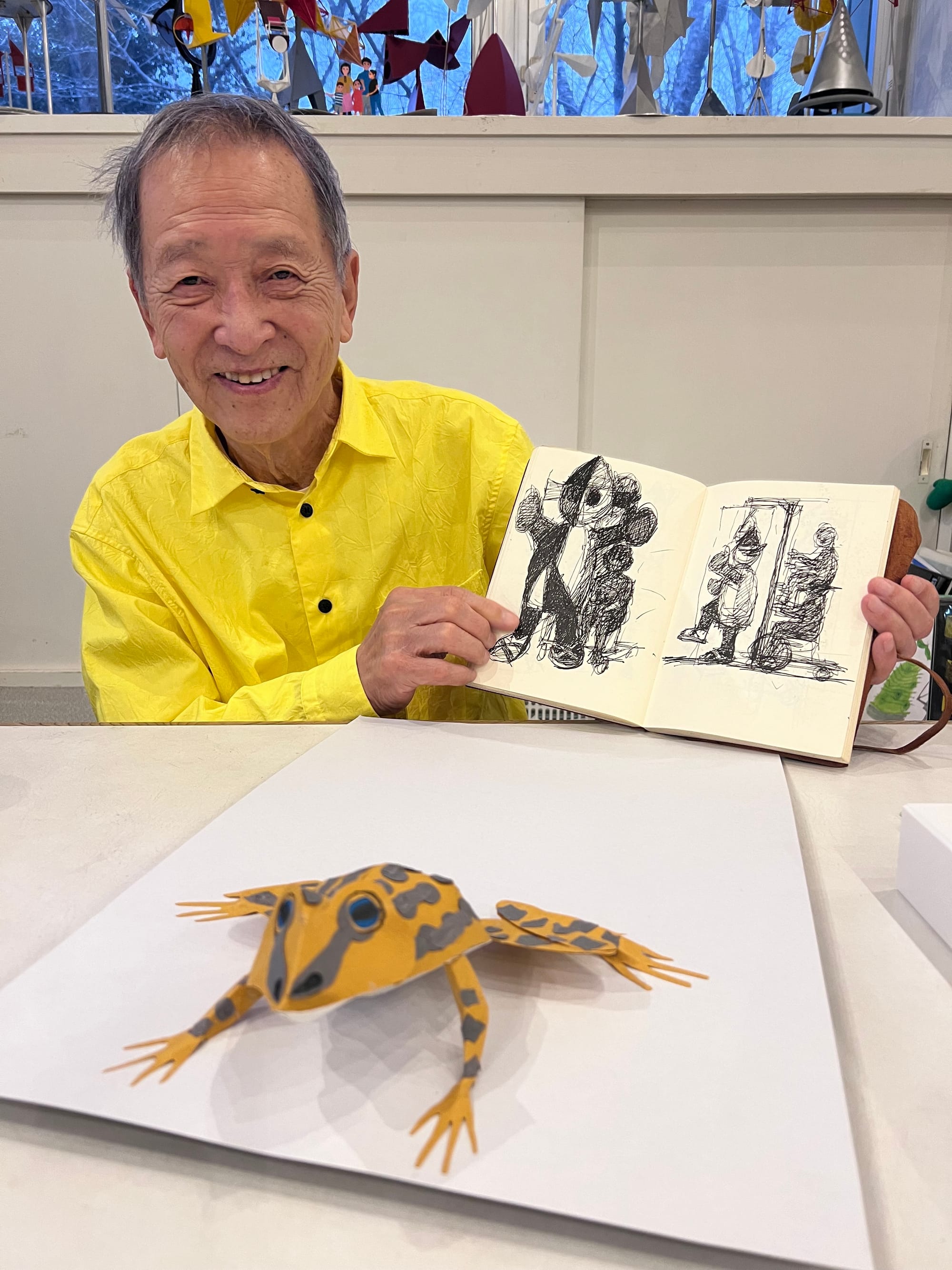 In addition to creating monumental kinetic works made from aluminum, steel, carbon fiber, and “other materials found on this planet,” Shingu also embarked on a lifelong mission of engaging with children through illustrated books, theatrical performances, and character design.