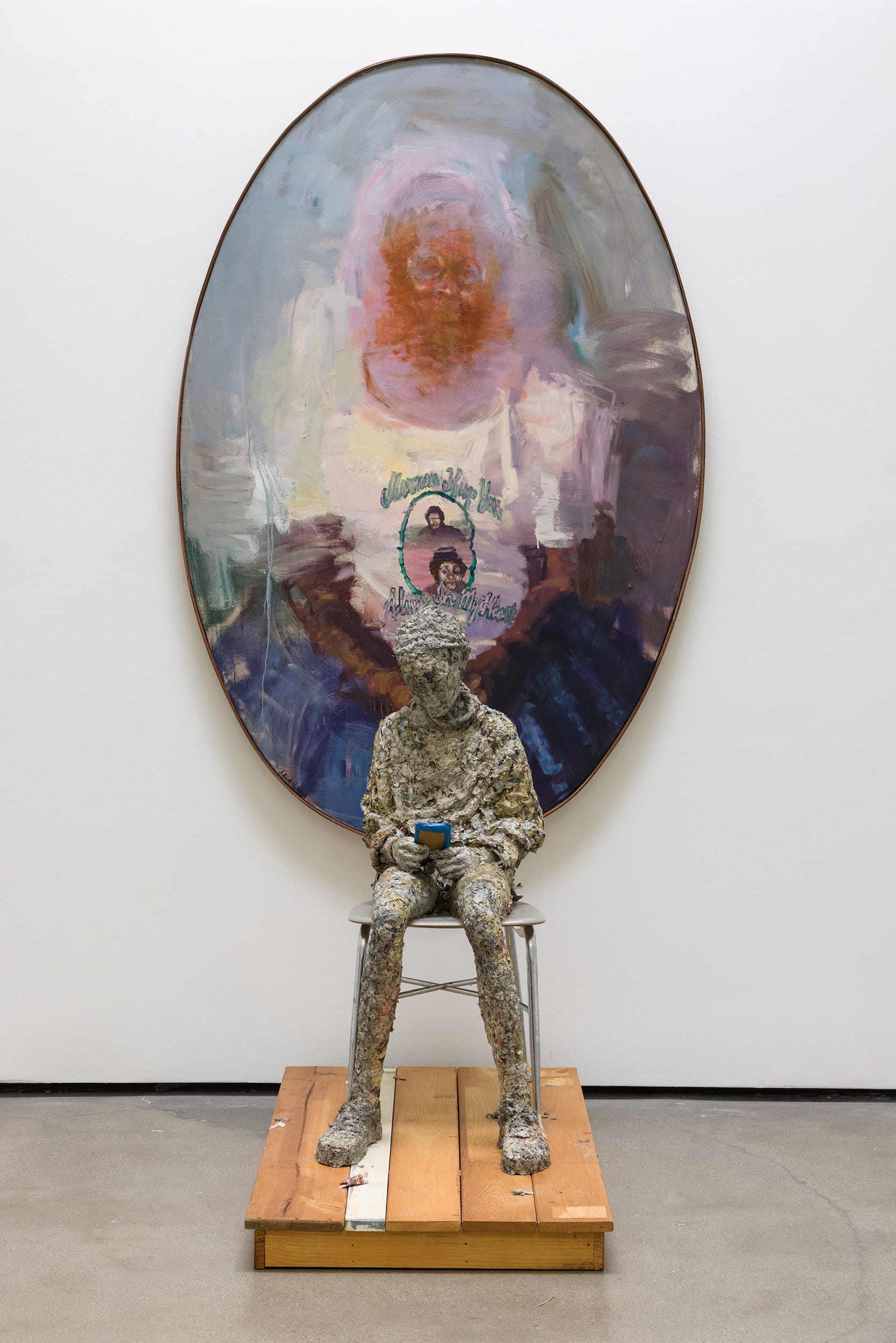 “The thing that was so weird was that [the pandemic] caused you to think more deeply about family, etcetera, on the one hand,” artist Sedrick Huckaby pointed out in an interview in the book. “And then, on the other hand, it disconnected you from people.” Huckaby’s “Connection” captures this tension: a papier-mâché sculpture of his daughter, Halle Lujah Huckaby, looking at her phone sits in front of an oil on canvas painting depicting her grandmother and great-grandmother in ghostly silhouette.