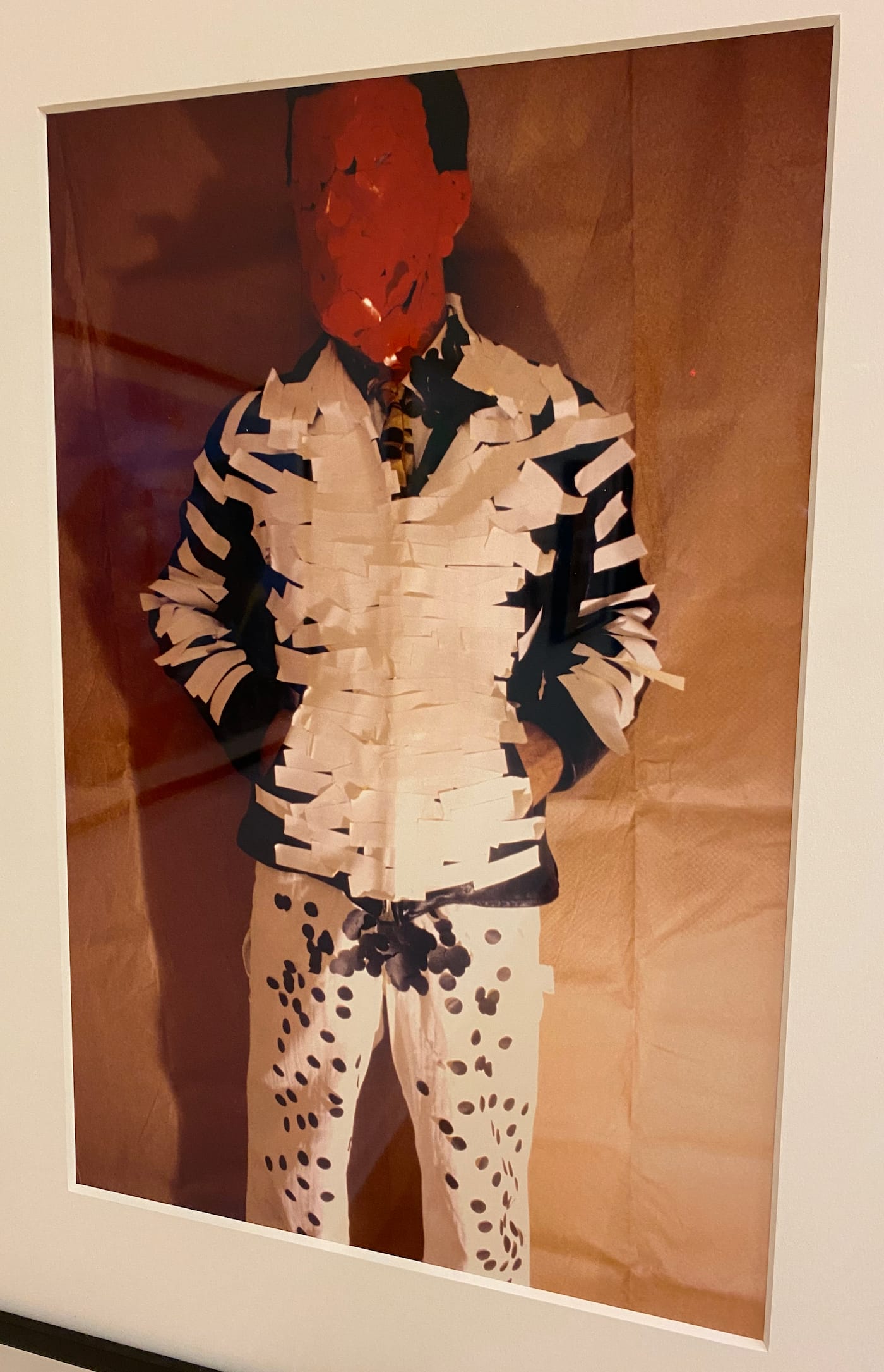 Patssi Valdez’s photograph “Pillow Talk (Betti Salas)” (c. 1978–80) resembles a fashion spread with Salas in a hot pink, skin-tight outfit with heart-shaped sunglasses, her black leather gloves giving a hint of danger. Judy Baca’s serigraph “Tres Pachucas” (2018) is a trio of images of the campy, bad girl persona she developed for performances in 1976, characterized by a mixture of parody and pride. Two works by Harry Gamboa Jr. — a member of seminal art collective ASCO alongside Valdez, Glugio “Gronk” Nicandro, and Willie Herrón — explore issues of erasure and stereotyping. “Iris Crisis” (1982) is a self-portrait in which Gamboa has covered his face and body with tape, rendering him unrecognizable, a cypher to be projected upon. “Decoy Gang War Victim” (1974) features Gronk lying in the middle of the street surrounded by road flares, a staged crime scene that calls out the one-dimensional portrayal of Latinas/os in Hollywood.