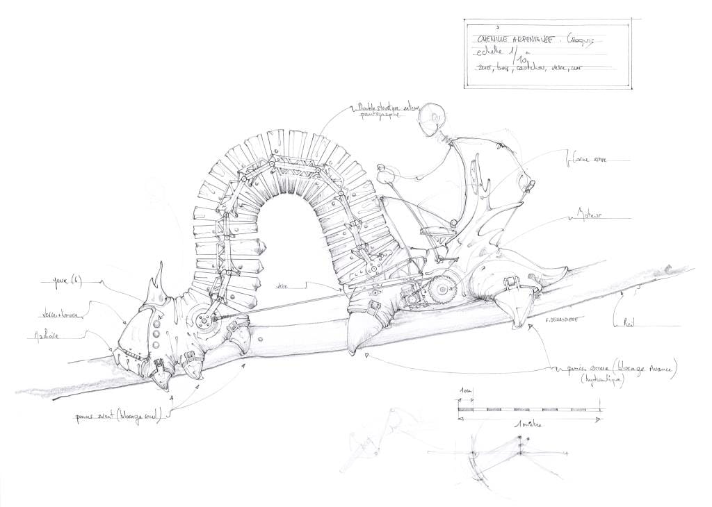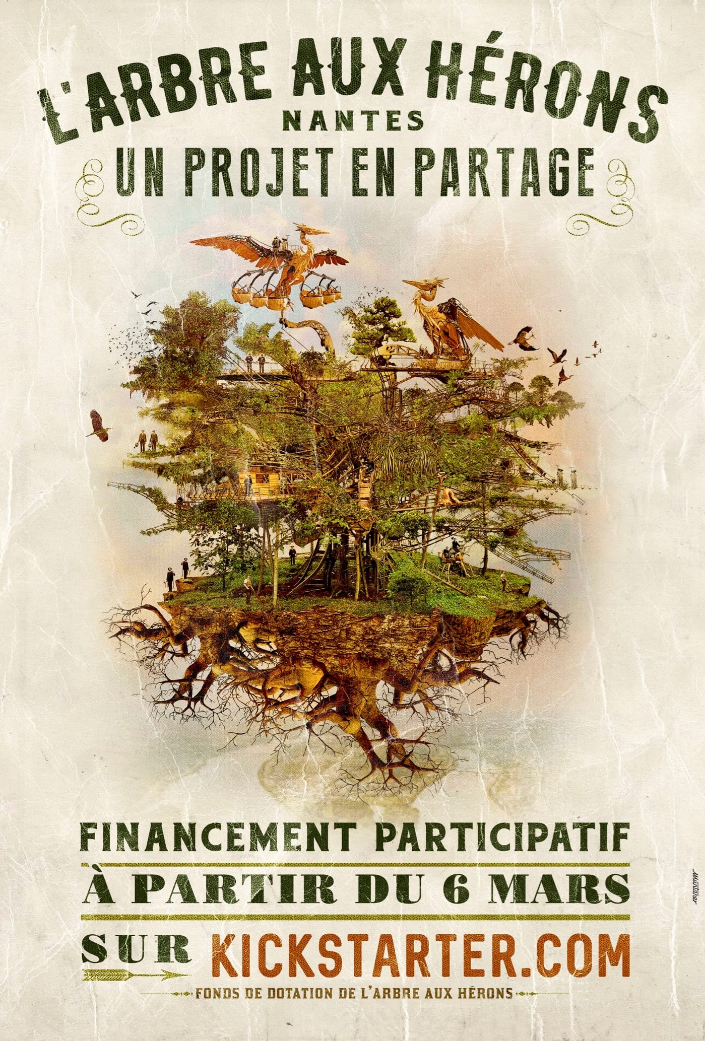 The Heron’s Tree might seem like a pipe dream, but realizing complex, extravagant engineering is La Machine’s specialty. In 2007, it sent a mechanical pachyderm, carrying dozens of passengers, for a walk on Ile de Nantes; in 2012, it opened a massive carousel comprised of three tiers, featuring revolving marine creatures. Bordering on urban planning, this third project invites us to further imagine how strange encounters and enchantment can be introduced into our cities in bold form.