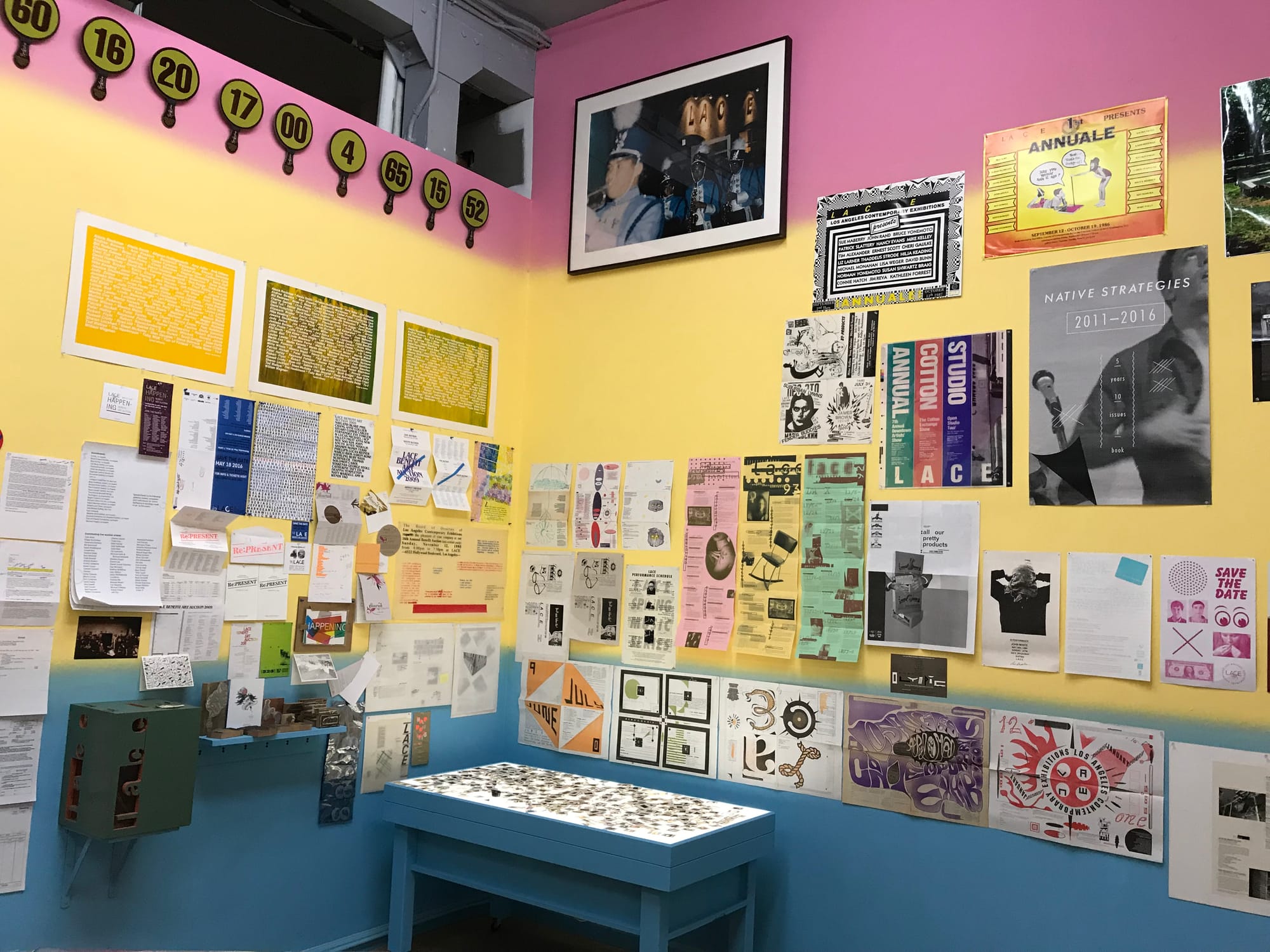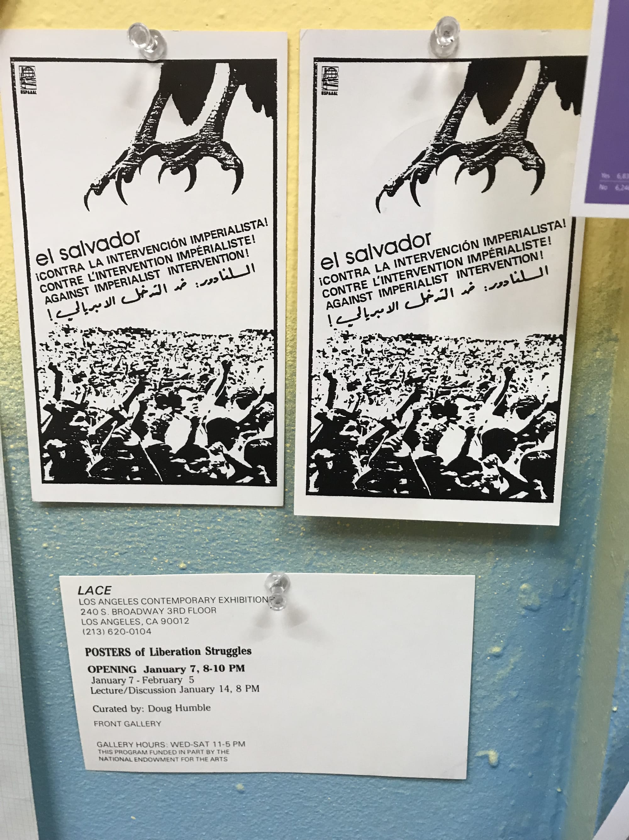 A walkthrough of The Archival Impulse reveals other major figures and historical moments that passed through LACE, like the TV Generations exhibition, curated by John Baldessari and Bruce Yonemoto in 1986, and Against Nature, a 1988 group show curated by Dennis Cooper and Richard Hawkins in response to the AIDS crisis. A brochure from a 1989 retrospective show for Ana Mendieta possibly marks the last time the late artist had a solo exhibition in Los Angeles. Another show from the ’80s, an exhibition of posters from liberation struggles around the world, further point to LACE’s engagement with local and global politics.