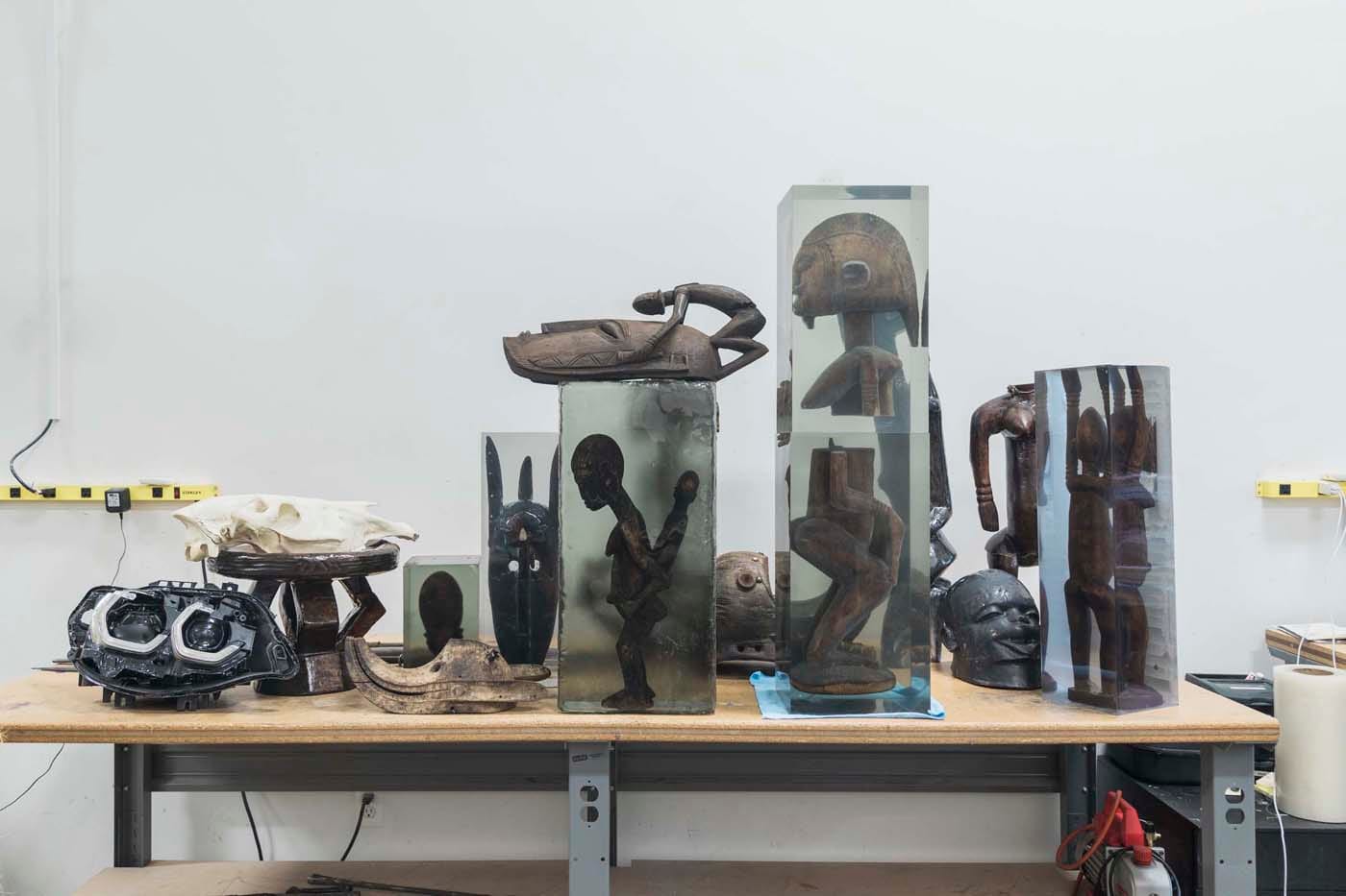 Harrison’s project, The Consequence of Platforms, has been ongoing for several years, with iterations and extensions popping up in places like the University of Michigan’s Institute for the Humanities Gallery and the Museum of Contemporary Art Detroit (MOCAD). For his LACMA iteration, Harrison plans to collaborate with scientists on a material that can be reconstituted for the 3D printing of objects. Specifically, Harrison has been replicating artifacts with obscure relation to the African diaspora — roots that were historically obscured by colonialism and enslavement, and continue to be complicated by tourism culture that values “authenticity” in ways that drive performative identity both within Africa and abroad. As always, Harrison continues to seek opportunities to further compound these questions of cultural provenance, inheritance, and identity.