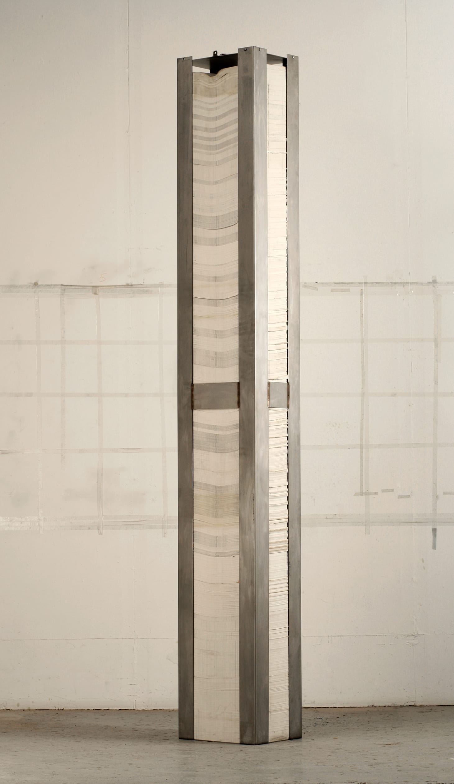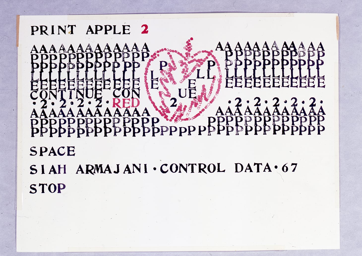 In 1967, working in the computer labs of the University of Minnesota, Armajani created “Print Apple 2” from computerized print. This work — in the permanent collection of the Grey Art Gallery, New York University — references his earlier “Father Has an Apple” while using computer data to push both language and art to new dimensions. Computers allowed Armajani to extend his lifelong interest in mathematics. In 1970, his art was featured in the first ever Conceptual Art exhibition mounted at New York’s Museum of Modern Art — a seminal show titled Information, curated by Kyanaston McShine. On July 30, 1970, MoMA issued a press release titled “Computer Print-Out Makes Nine Foot Column in Museum Show.” Describing Armajani’s revolutionary artwork, the museums noted: “A computer print-out of all the digits between zero and one, stacked in a column more than nine feet high and weighing 500 pounds, is on view at the Museum of Modern Art … The work of Siah Armajani, a Persian born artist now living in Minneapolis, ‘Number Between 0 and 1’ is accompanied by three documentary photographs. The column consists of 25,974 pages, presenting 28,571 hours of print time.”
