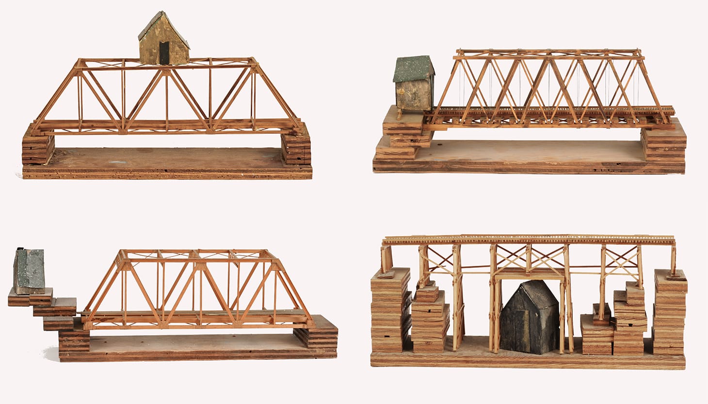 The bridge is perhaps the most central element in Armajani’s architectural sculptures and public art. He has made dozens of bridges in the U.S. and another six across Europe. Speaking with Hans Ulrich Obrist at the Serpentine Gallery in 2013, Armajani explains the importance of bridges in his art. “Heidegger says anything that is before a bridge, anything that is after a bridge, anything that is above a bridge, anything that is a below a bridge, it brings them all into one place.” Armajani’s sculpture, “Four Houses for Four Conditions” (1974-75) is a powerful articulation of this notion. This work was beautifully presented in a major exhibition dedicated to bridges as motif in Armajani’s art at the Kemper Museum in 2016 and 2017.