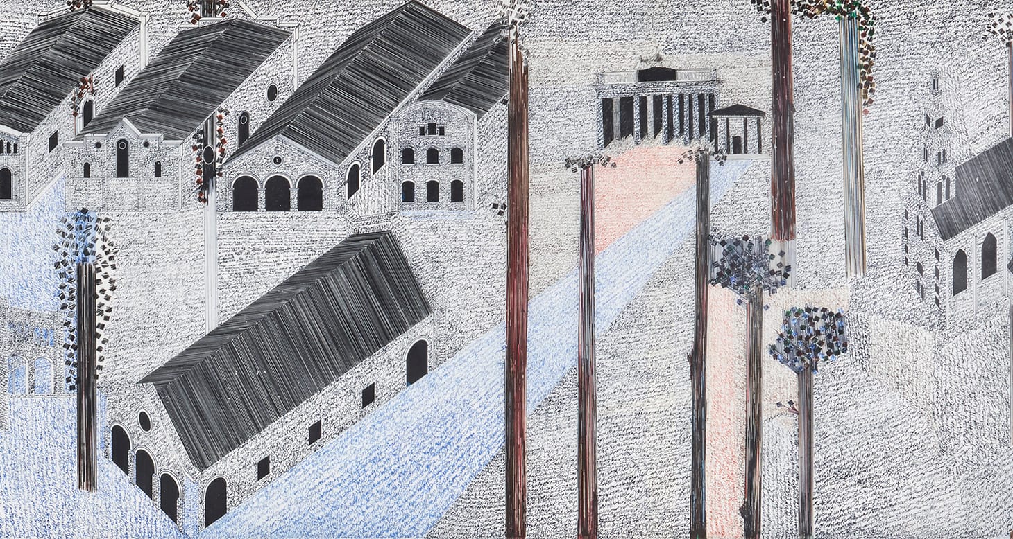 Armajani has gone on to make two other drawings in his written cities series — “Written Iran” (2015-16) and “Written Berlin: Tomb for Dietrich Bonhoeffer and Walter Benjamin” (2014-15). “Written Minneapolis (The Last Tomb)” is promised to the Menil Collection; “Written Iran” was acquired by the Metropolitan Museum of Art. These breathtakingly beautiful drawings, which took hundreds of hours of detailed work to complete, are in a sense a culmination — of Armajani’s interest in poetry, in philosophy, in architecture. They are about a sense of place, created by language and cities.