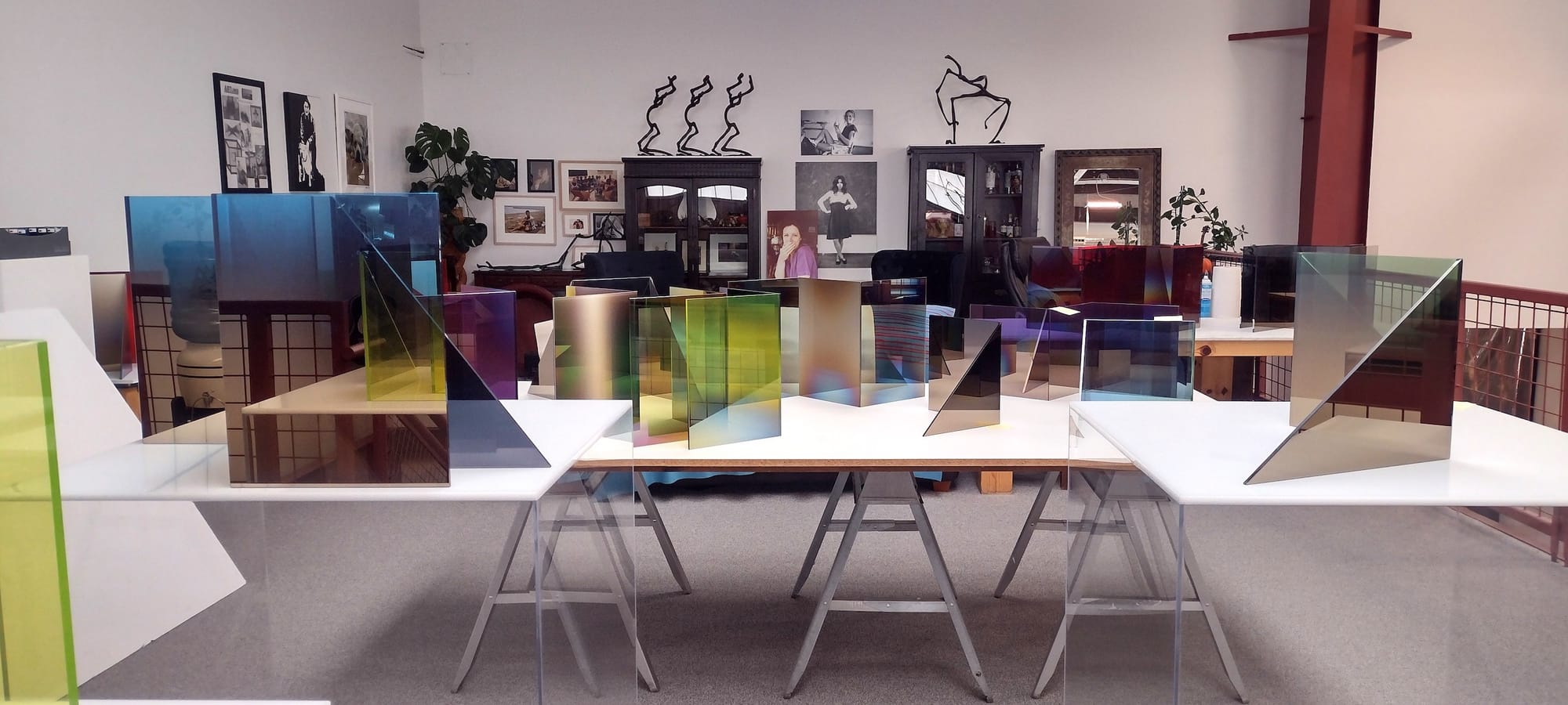 H: (Laughs) Yes, I guess that’s true. Concerning color, are you working with the colors of the light spectrum as it interacts with the glass or is it pigmented film on glass?