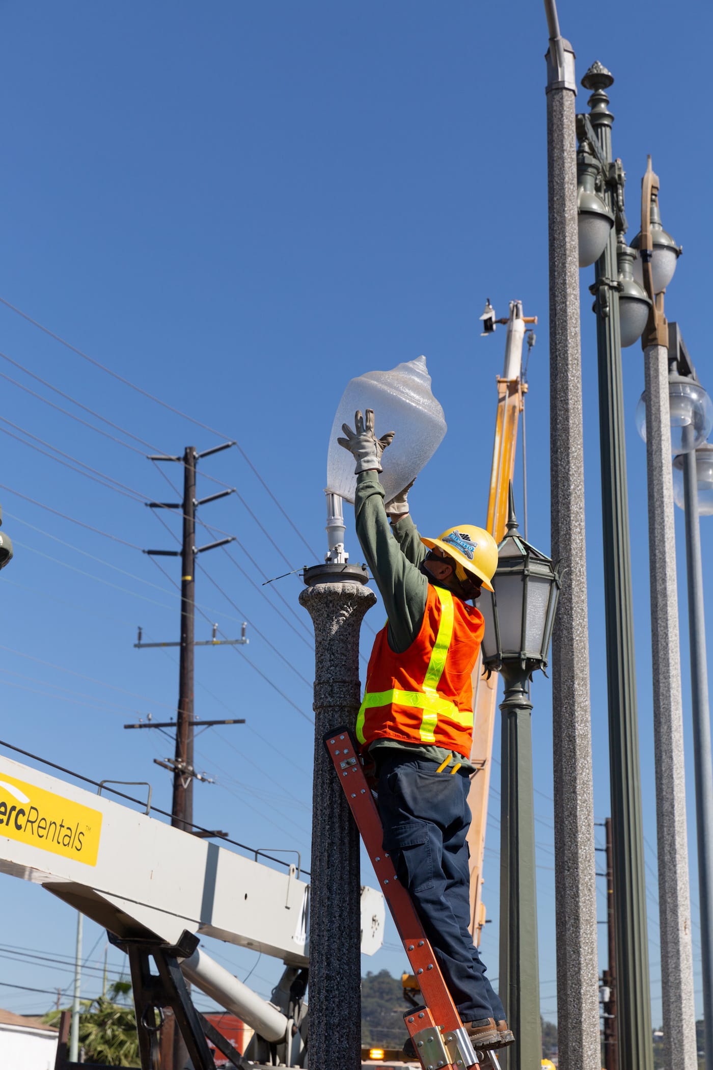 “The whole idea was to look at the sculptural presence of street lighting but also to consider sort of the stewardship of what street lighting does and to consider what people do to take care of the city,” she recalled.