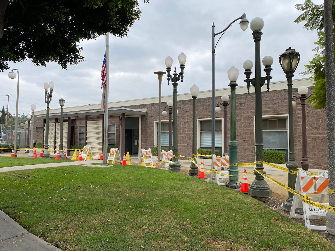 I met Klein last month outside the Bureau of Street Lighting office in East Hollywood to witness the installation of the second iteration of “Vermonica.” The work was originally installed in 1993, along a median in the middle of a strip mall parking lot at the intersection of Vermont Avenue and Santa Monica Boulevard, hence the portmanteau Vermonica. Klein arranged the 25 different lampposts (all ranging from 1925 to 1993) in a dramatic sequence like a candelabra, with smaller ones at the ends, growing to a crescendo of taller, more ornate models in the center. She wanted to represent a selection of the some 250 different kinds of light poles then in use in Los Angeles, from the singular and iconic, to the widely seen and representative.
