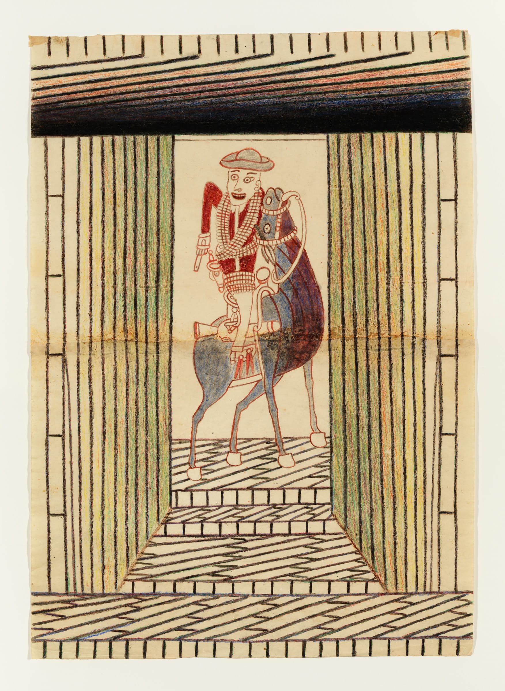 The ICA LA will open with an exhibition dedicated to the work of Martín Ramírez, a Mexican-born artist who spent the last 30 years of his life in mental institutions in Northern California, where he created hundreds of drawings. After emigrating to the US in 1925 to earn money to support his family, Ramírez fell on hard times during the Great Depression. He was picked up as a vagrant in 1931, and was institutionalized as a mute schizophrenic, some believe, simply because he didn’t speak English. The 51 works featured in the show are evidence of a man trying to find solace in a hostile world, while communicating aspects of his previous life. The drawings are filled with riders on horseback, religious figures, and architectural constructions, some of which border on abstraction, taken over by mesmerizing compositions of parallel lines. One particular untitled 1950 work bears a resemblance to David Hockney’s 1980 “Mulholland Drive” painting, with undulating hills and roads flattened into a compressed space.