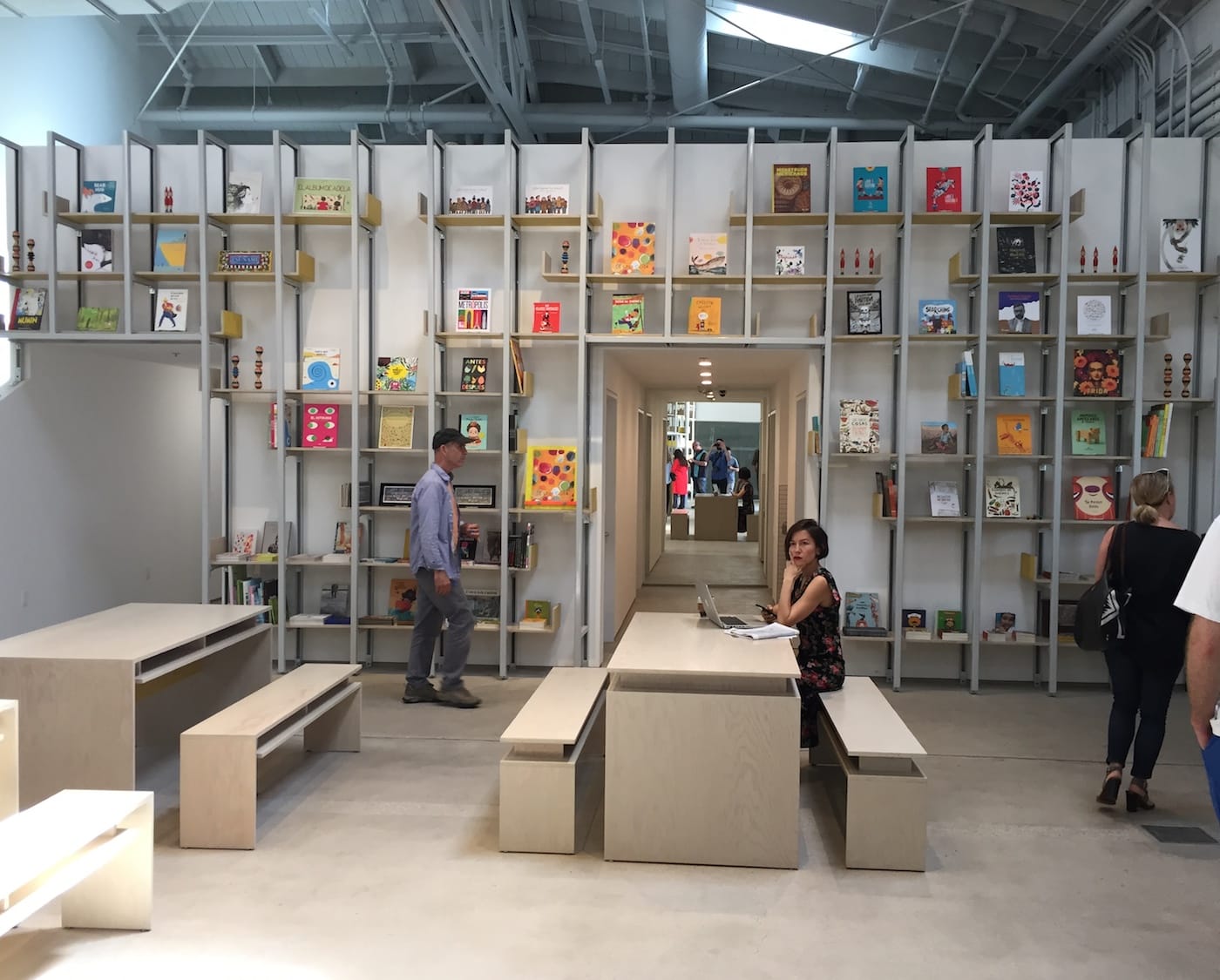 The architect responsible for the renovations, Kulapat Yantrasast of wHY, said his impression of the SMMoA guided how he designed the museum. “I looked into the history of the museum and realized how many artists from LA and beyond had their first show there,” he told the crowd on Thursday. Instead of highlighting the existing architecture — as Yantrasast did in his dazzling makeover of the Scottish Rite Masonic Temple into the Marciano Foundation — he has created functional, open spaces that foreground the art.