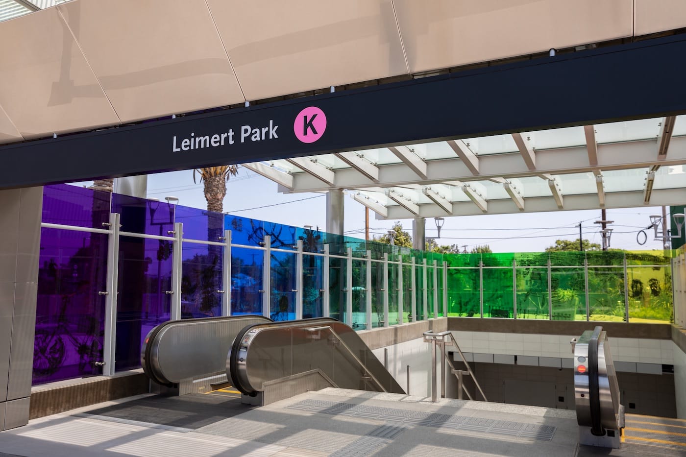 LOS ANGELES — On Friday, October 7, the long-awaited K Line opened to the public, connecting South Los Angeles communities from West Adams and Leimert Park to Inglewood, historic centers of Black American life and culture in LA. The $2.1 billion light rail line is significant not just for its expansion of public transit options in the previously underserved area but also for its art program, which encompasses 14 artworks by 14 artists across the seven stations. (An eighth station, connecting to the Los Angeles International Airport, is set to open next year.)