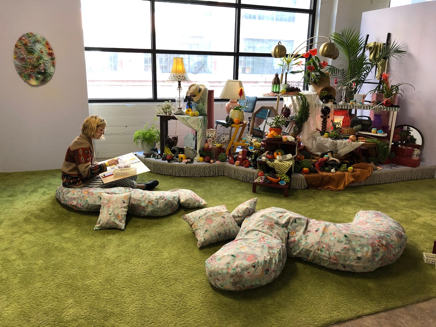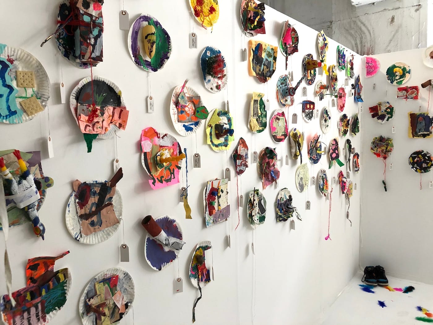 Greg Haberny curated by Andrew Gori and Ambre Kelly. Each paper plate work was priced at $100, with a limit of three.Artist Sean Noyce next to his sculpture at Durden & Ray. The collective mounted a show based around the theme of “Happy House,” which takes its name from a Siouxsie and the Banshees song.
