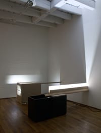Inside, James Woodfill dominates the show with his low installations that literally project fluorescent light in ways that make them feel delicate and sculptural. As the light in the gallery fluctuates with the time of day, Woodfill’s works change to reveal (or hide) layers of light that have a drawing-like quality as they are projected onto neighboring surfaces. If at first they felt a little hermeneutic, I found they opened up with the more time you spent with them. My only criticism is that both of the works were installed a little too close together (I initially thought they were one piece), and I think art like this needs space to breathe.