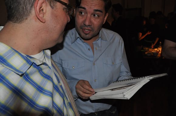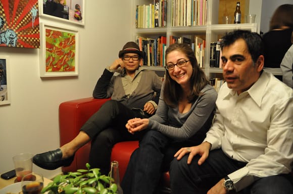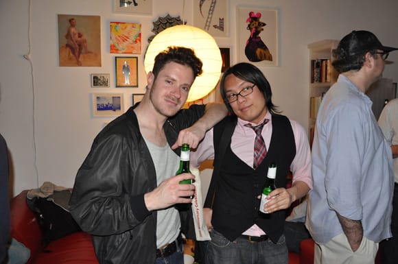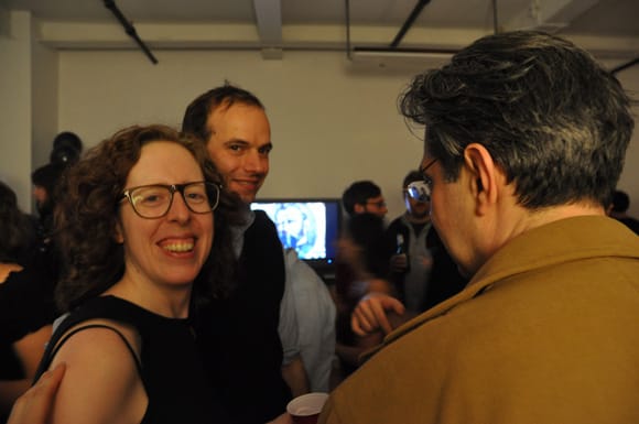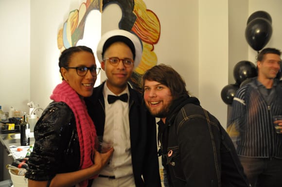 Also, a special thank you to our first six months of sponsors: Perrier, Pernod Absinthe, Artcards.cc, Vartali, Materials for the Arts, Mattress Factory, Momenta Art, Tyler School of Art, and our upcoming sponsors the Escape From New York exhibition and Hunter MFA Thesis Exhibition. Thanks for believing in the work we do and helping make Hyperallergic possible. And thanks to William Sterling Walker for acting as the unofficial photographer during the evening.