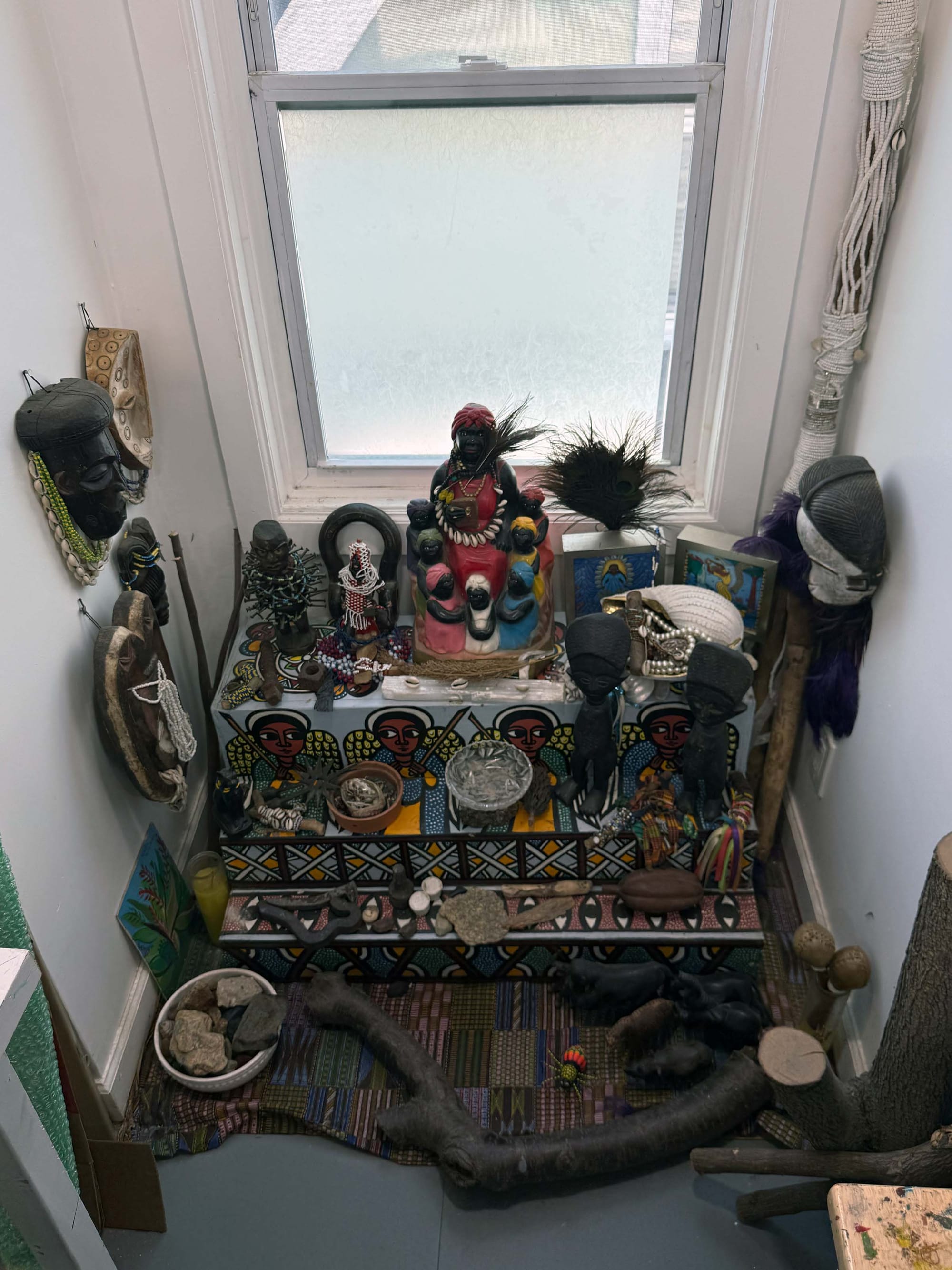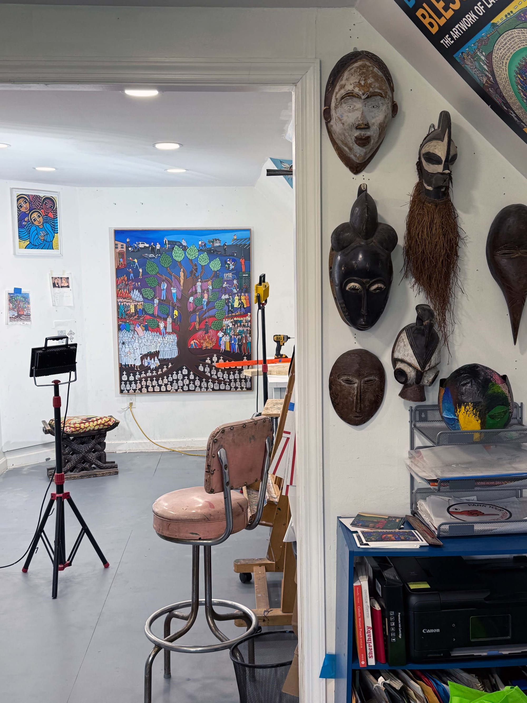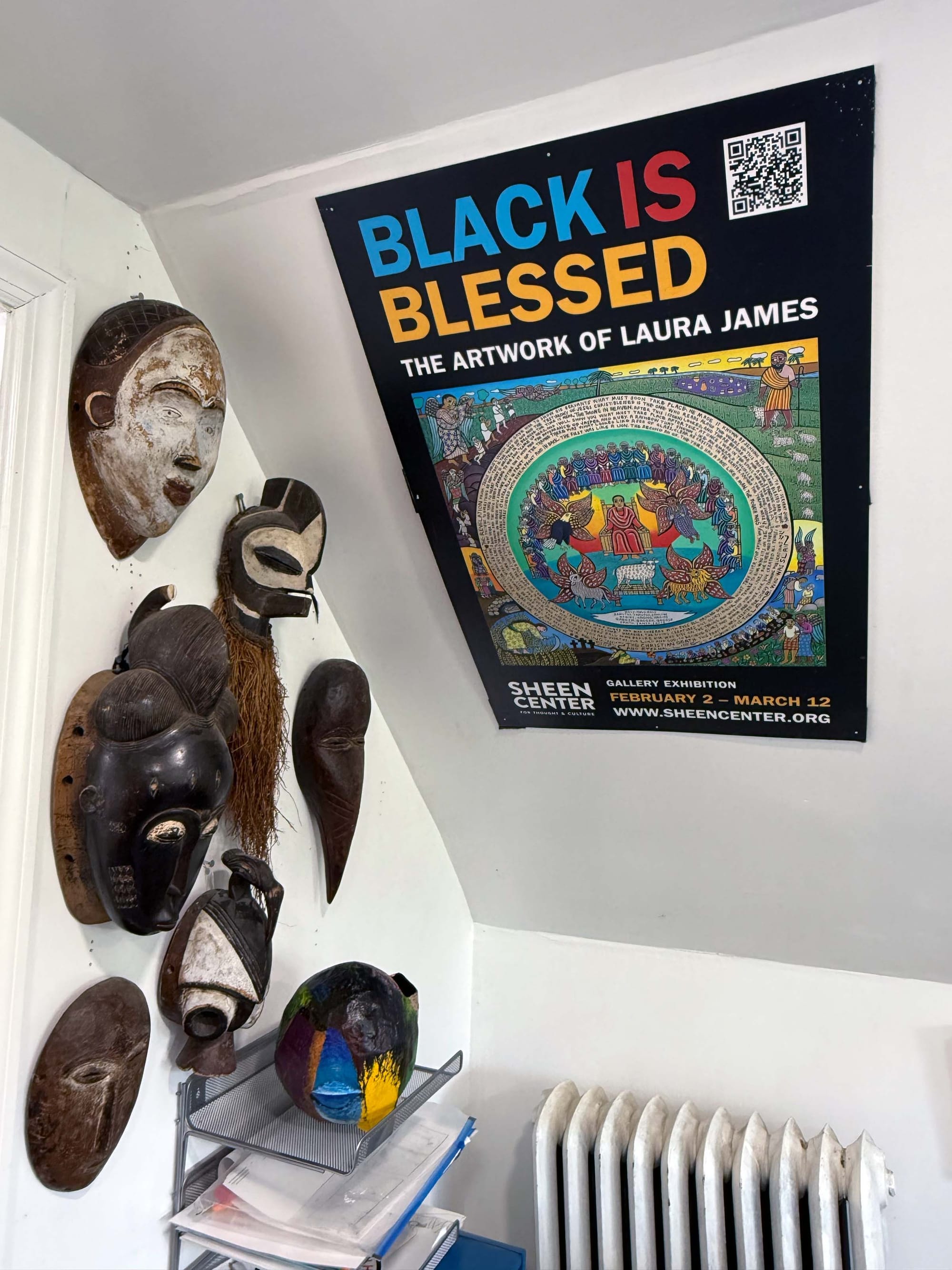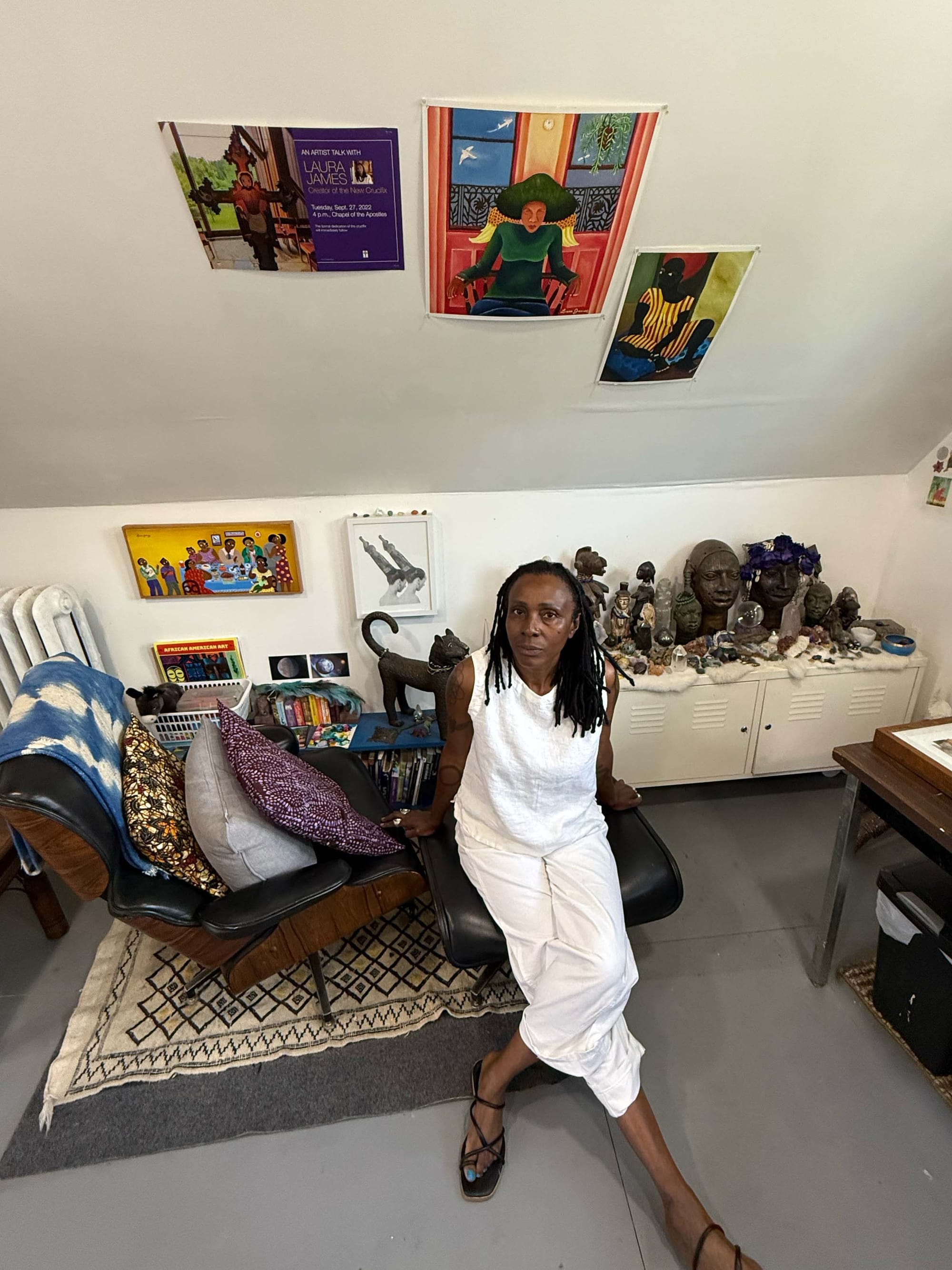“Make work.” Laura James shared this concise yet powerful mantra with me during a visit to her Bronx studio in West Farms. A poster bearing the phrase hangs on her wall — a nod, she explained, to the influence of Marcus Garvey’s industrious philosophy. James doesn’t seek institutional permission; she makes art relentlessly, owns the means of making, and lets the work sustain her community. She is a beloved presence in the cultural ecology of the Bronx. She is a multidisciplinary artist, manages a thriving community garden in her neighborhood of West Farms, and is the founder of BX200: Bronx Visual Artists Directory. She was raised in Brooklyn by Antiguan parents and has lived in the Bronx for decades.