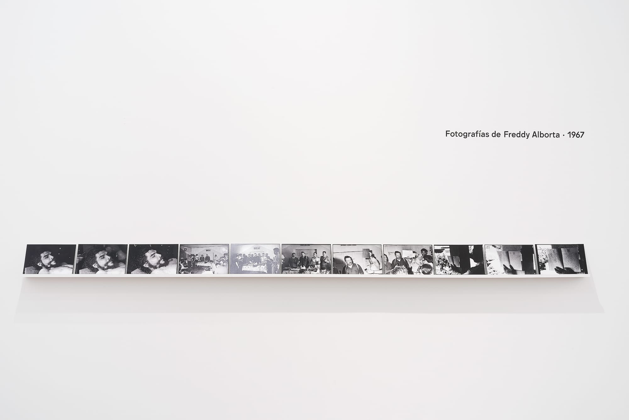 For those who remember Alborta’s famous photograph, the exhibition will resonate on a particularly deep level. Installed in a small gallery leading to the screening room for El día que me quieras are 66 black and white images, the complete archive of Alborta’s photographs of Che’s body. Several of them reveal unsettling details absent from the photograph circulated by Reuters, such as the bodies of El Chino and Willy, two guerrillas who had fallen with Che during the ambush in La Higuera, as they lie, collecting dust, on the floor of the laundry room.