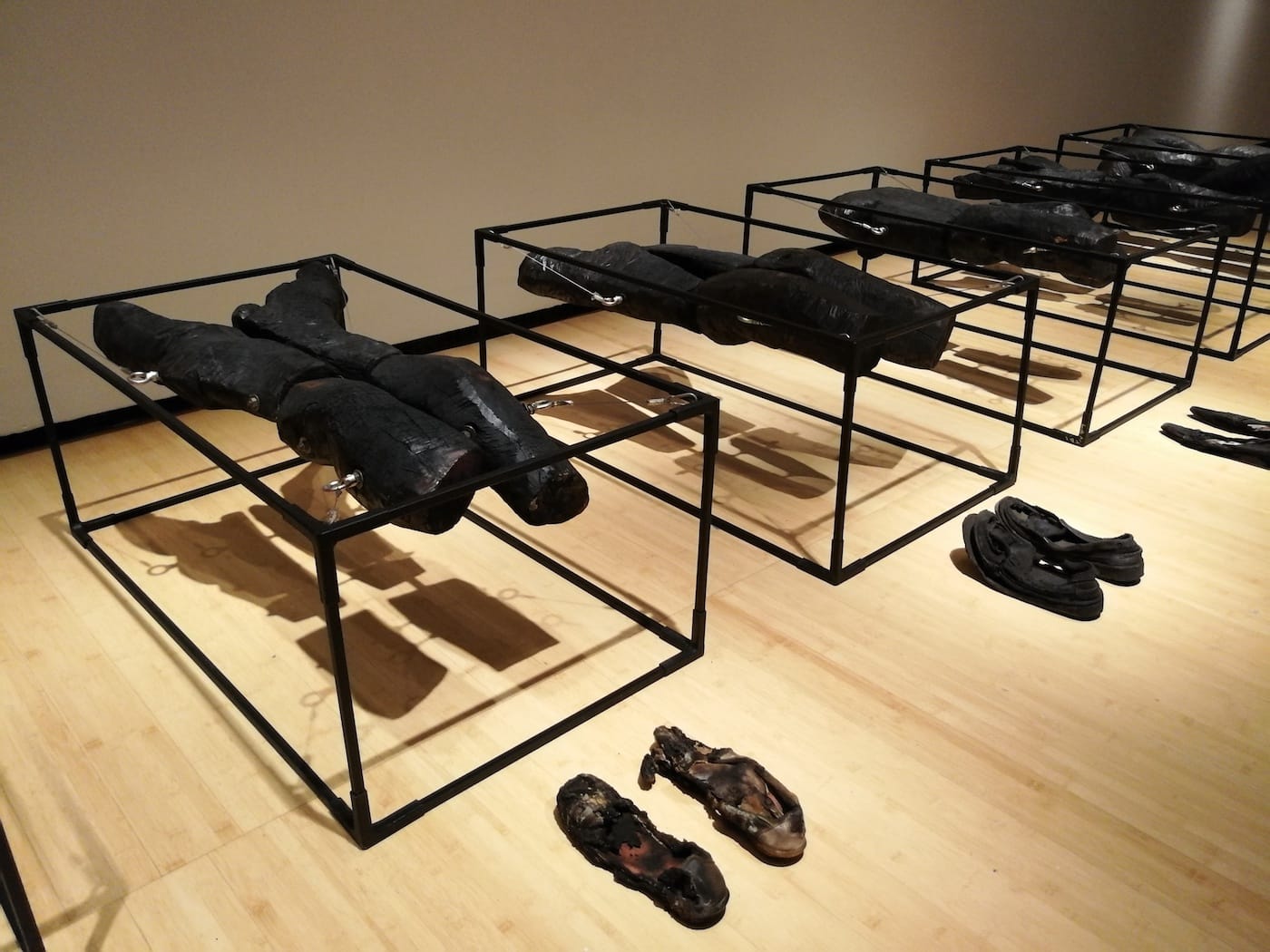 Renowned as the father of activist art in Indonesia, Harsono is adamant on giving voice to marginalized social groups. His multi-media installation Burned Victims (1998) is a graphic rendering of a bloody uprising that took place in Jakarta, where hundreds of civilians perished in burning malls. (Under the military dictatorship of President Suharto, the police brutally killed four protesting students, causing chaos to ensue and dissolve into mass looting and killing sprees.) Charred wooden blocks resembling human torsos are horizontally strung up in eight metal scaffoldings, while an equally burned pair of shoes is placed in front of each “body,” as if they had just been taken off. These gruesome objects are the products of a public performance in which Harsono incinerated the torsos, wearing a placard that read: “Who should be held accountable?” Indeed, the answer is not quite so easy, as the impetus for violence and its enactment are ambiguously located in the collective body of the political regime.