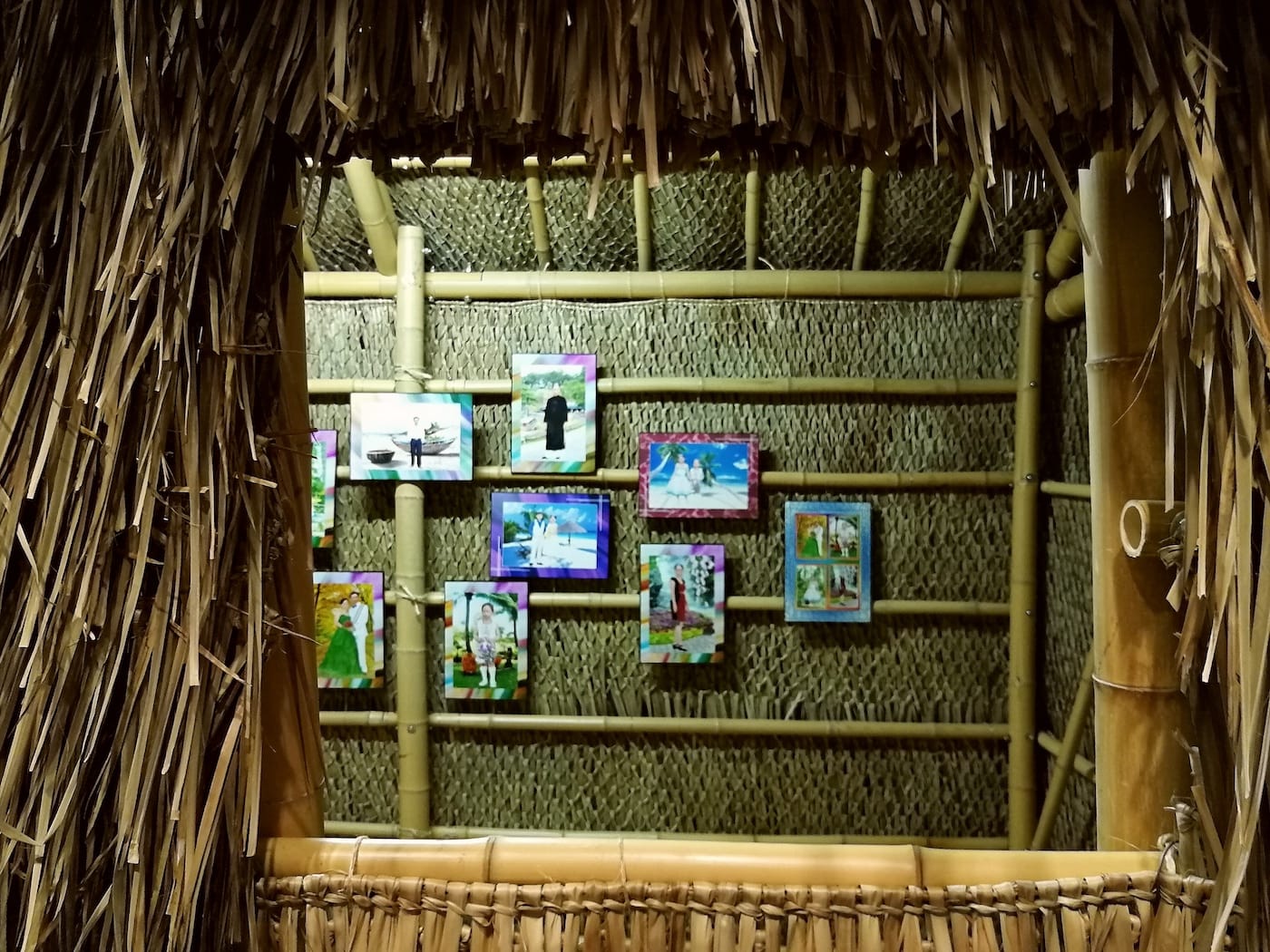 One of the few younger artists in the show, Nguyen Thi Thanh Mai, inserts herself into marginalized communities and unveils their conditions of plight through documentary work. In 2014, she lived with Vietnamese refugees who have settled in a remote Cambodian fishing village. Without official status, these groups are suspended in terms of geography, nationality, and cultural belonging. Using building techniques taught to her by members of the community, the artist constructed a bamboo hut in the viewing space, and hung on its walls a series of colorful photographs. Observing closely, one discovers that the faces of these refugees are in fact Photoshopped onto well-dressed bodies and stock backgrounds featuring beaches, vacation huts, and status objects; gaudy elements are transformed into shimmers of hope and unattainable desires.