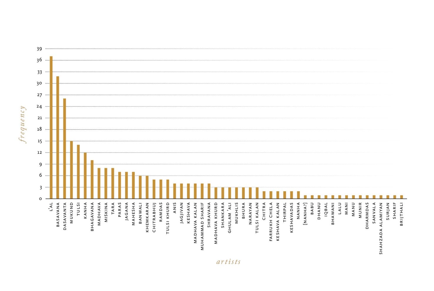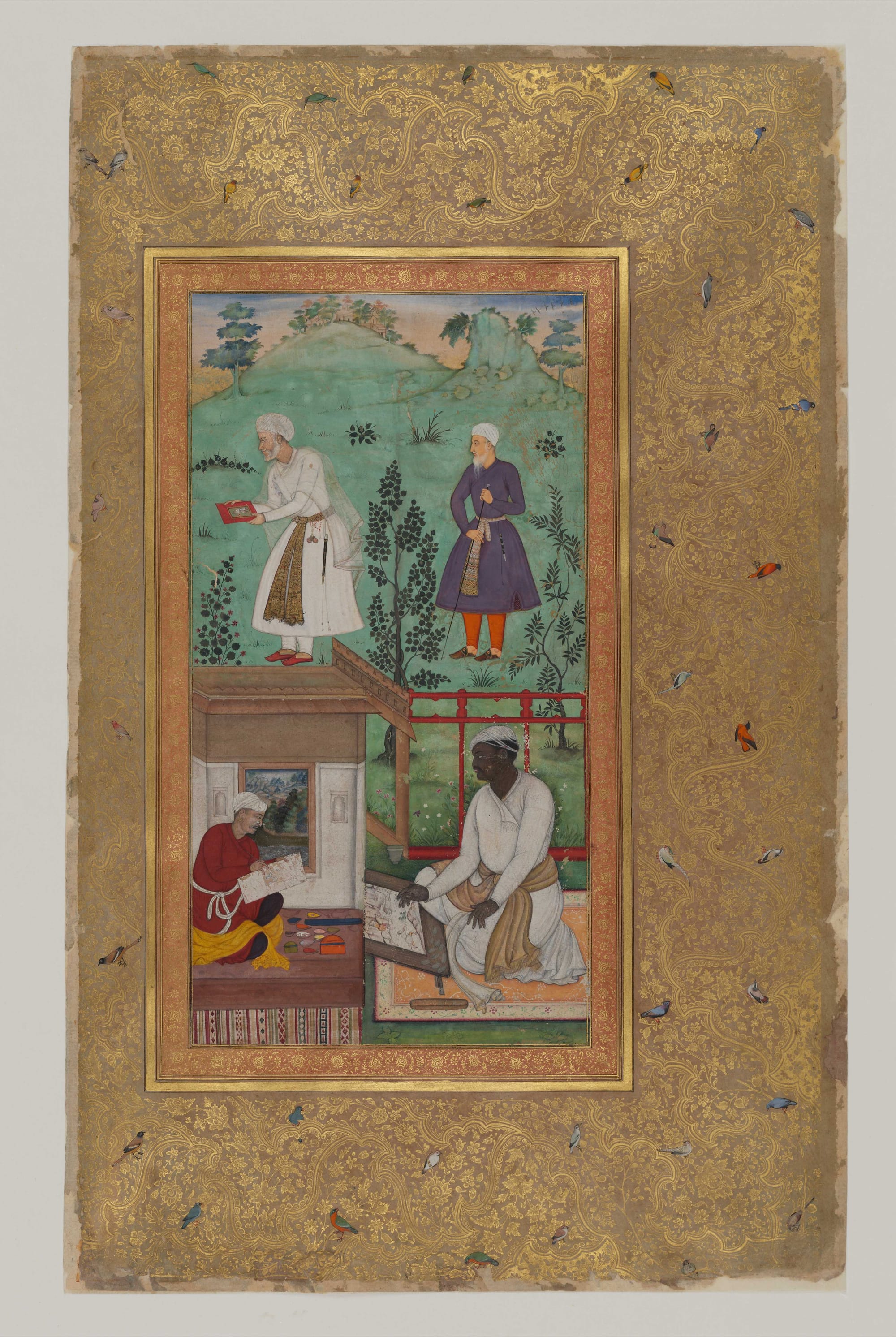 The succeeding British colonization of India between the mid-19th and 20th centuries led to the leaf-by-leaf dispersal of countless Mughal manuscripts into global institutions. We are left, as a result, with a sparse trail of primary written records: Precise locations of workshops, methods, and personal and professional connections between artists consequently remain an enigma.