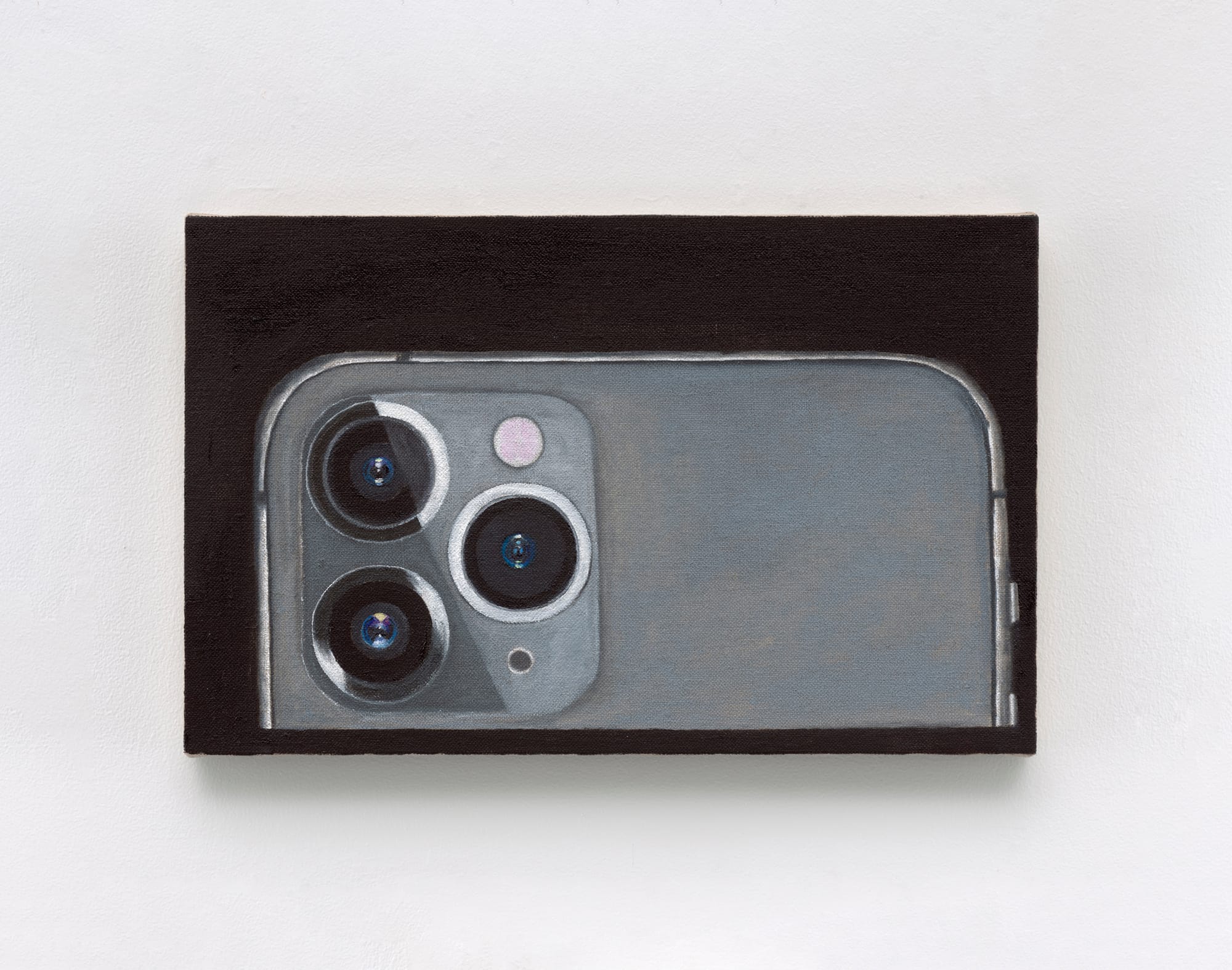 “iPhone 11” (2019-20) inverts the universal perspective of “Earth Bound.” Three round lenses on the titular phone mimic a face, which stares blankly at us, implicitly indicting our voracious appetite for capturing life without fully engaging with it. The paradox that Churchman seems to present in both of these works is that seeing all — that is, seeing the entire earth or its infinitude of images — can never convey a whole, and indeed, the notion of a whole is an illusion.