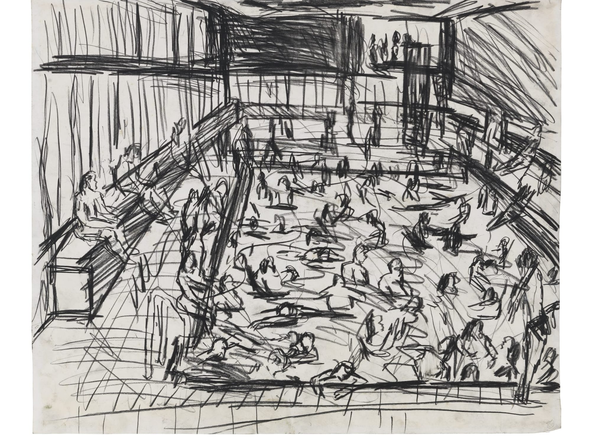 Take Leon Kossoff and his practice, which we can divide, for the sake of argument, into drawing and painting. Kossoff painted and drew throughout his life. Springing to Life, a new, extensive exhibition of his drawings (the first since his death in 2019) brings these issues — of lifelong battle and confrontation — into sharp and fascinating focus. The floors and walls of his studio overlooking the street in the north London house where he lived were as horrifying for any unsuspecting art critic to behold as any war zone. And all the more surprising because the man himself, when met at the door with a degree of queasiness and suspicion, was so reticent, shy, and mild-mannered.