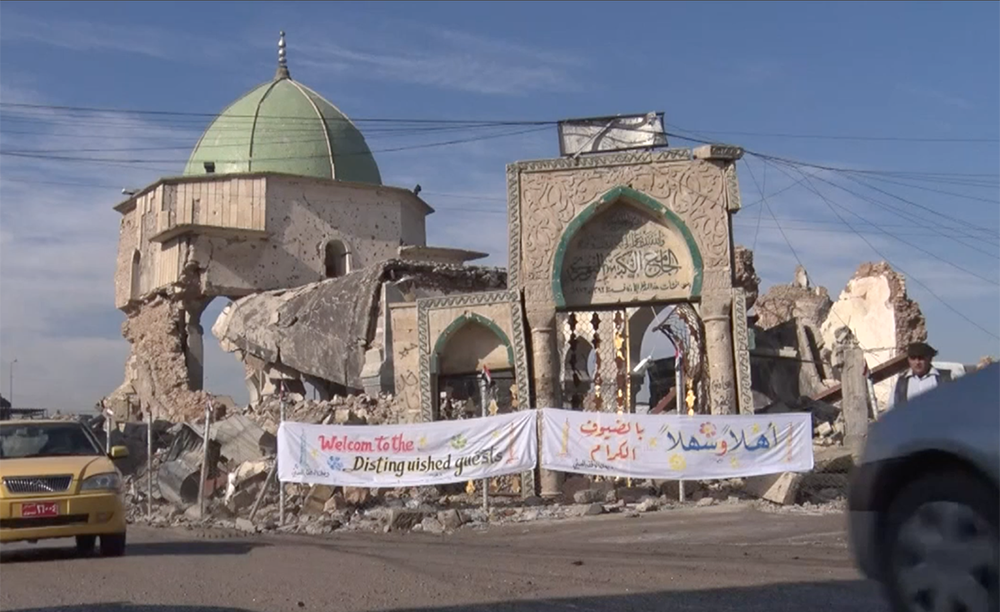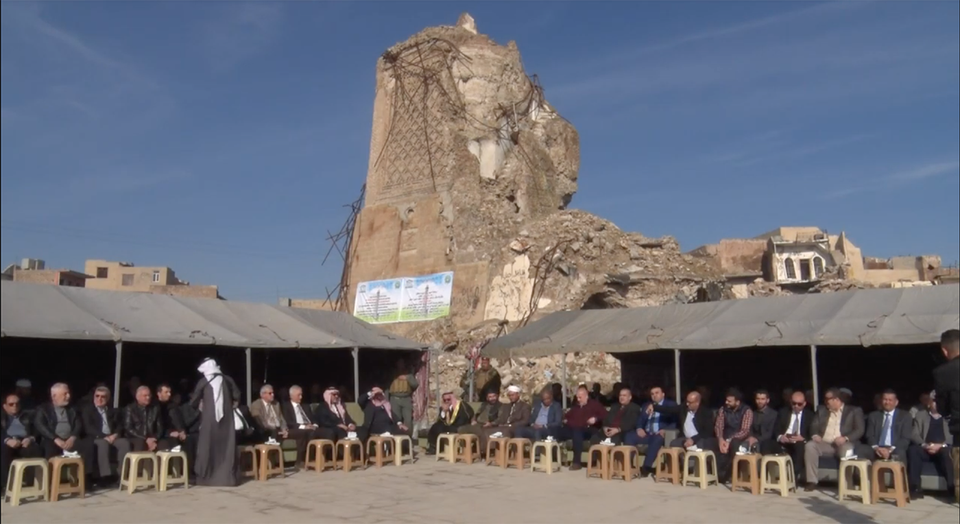 On Monday, December 17, two very different news stories broke relating to Mosul, the largest city in northern Iraq. One was the laying of the cornerstone for the rebuilding of the 800-year-old Al-Nuri mosque, destroyed by ISIS before they lost control of the city last year. The mosque — especially its distinctive leaning minaret, called al-Habda (“the hunchback”), now completely gone except for its base — has come to represent the entire city. The ceremony was attended by a number of visiting dignitaries from Iraq and abroad, as part of the UNESCO project “Revive the Spirit of Mosul.” In the news reports, the ceremony is presented as a powerful symbol of progress toward restoring Mosul as the thriving, pluralistic city it was before the war.