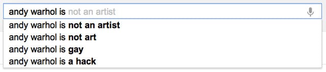 Last week, I was playing around on my gadgets and inadvertently discovered that Google has an opinion on art. So I decided to ask the all knowing algorithm about some art figures to see Mountain View’s perspective on artists.